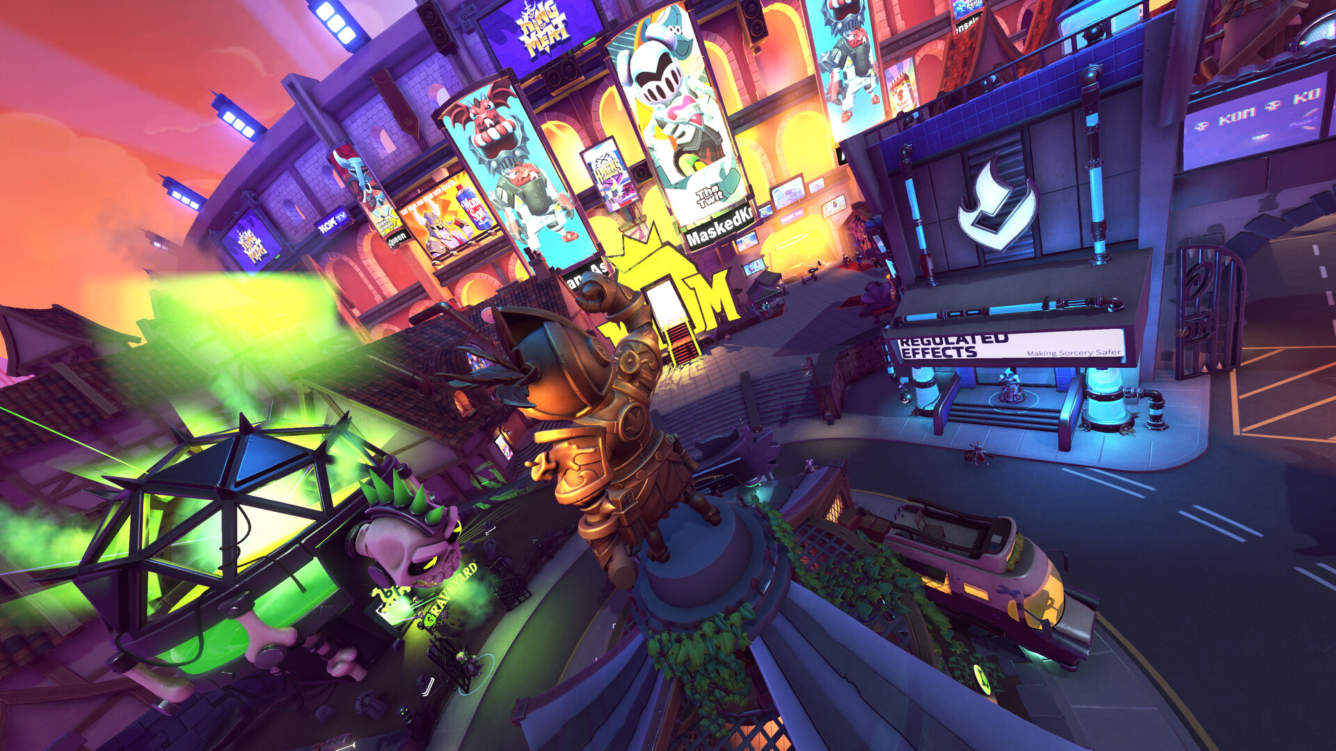 Come anticipato nell’introduzione, King of Meat è il nome di un popolare gioco a premi che unisce il combattimento PvE al dungeon crawling, buttando 4 valorosi guerrieri all’interno di arene folli e piene di trappole, mostri e loot da collezionare. E come nelle più grandi parodie alla Idiocracy, King of Meat non è il gioco più popolare del mondo di Loregok… È l’unico gioco attualmente esistente e seguito dalla popolazione. Un fenomeno che ha scosso l’intera economia e industria dell’intrattenimento, portando qualsiasi azienda, marchio o ente televisivo ad appiccicarci sopra il proprio sponsor e focalizzare la propria comunicazione attorno ad esso.