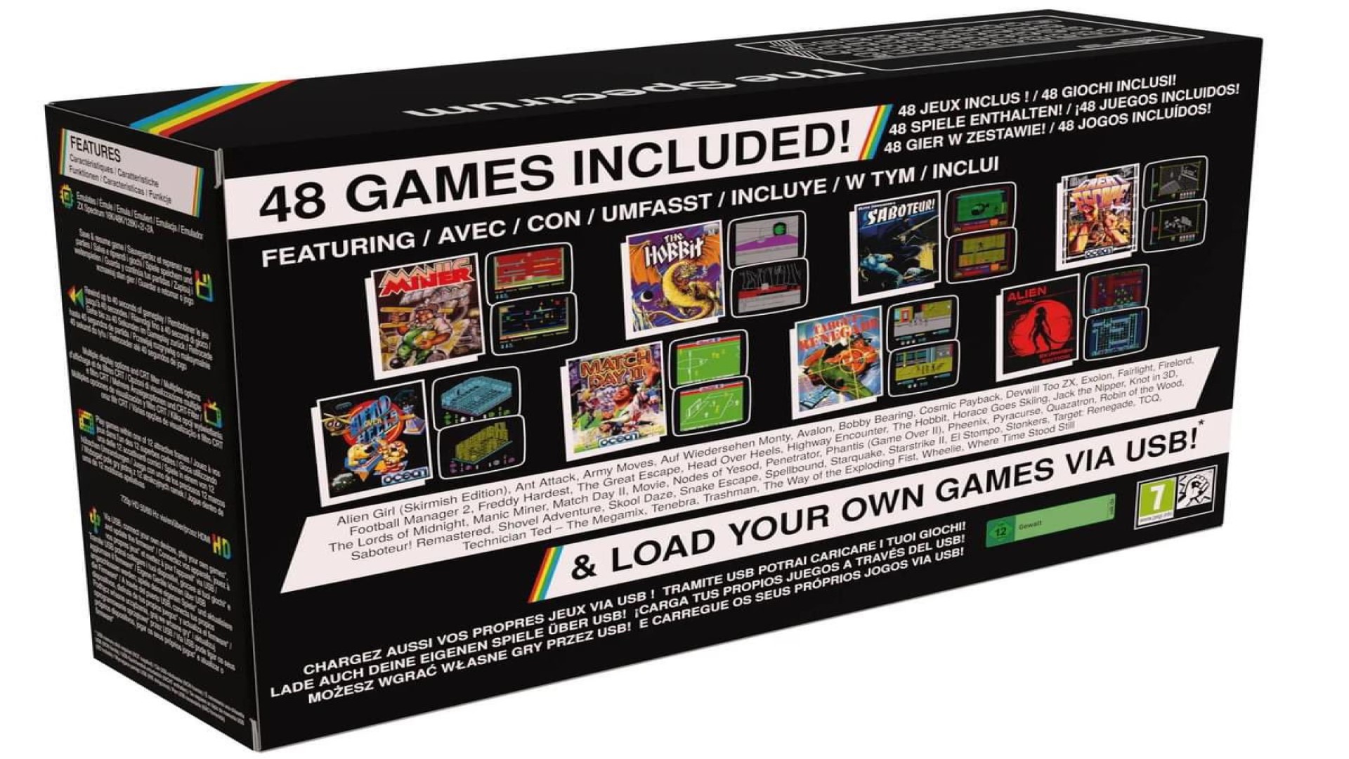 • 48 giochi integrati, tra cui: Manic Miner, Lo Hobbit e Head Over Heels.