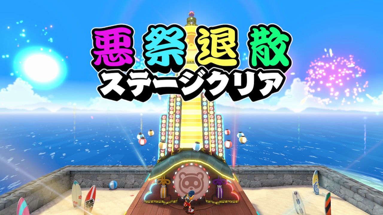 Il composto di kanji alla fine dello stage รจ โ€˜Akuโ€™ โ€˜Saiโ€™ โ€˜Taiโ€™ โ€˜Sanโ€™ e indica un โ€œdisperdere/mettere fine al Festival Malvagioโ€.