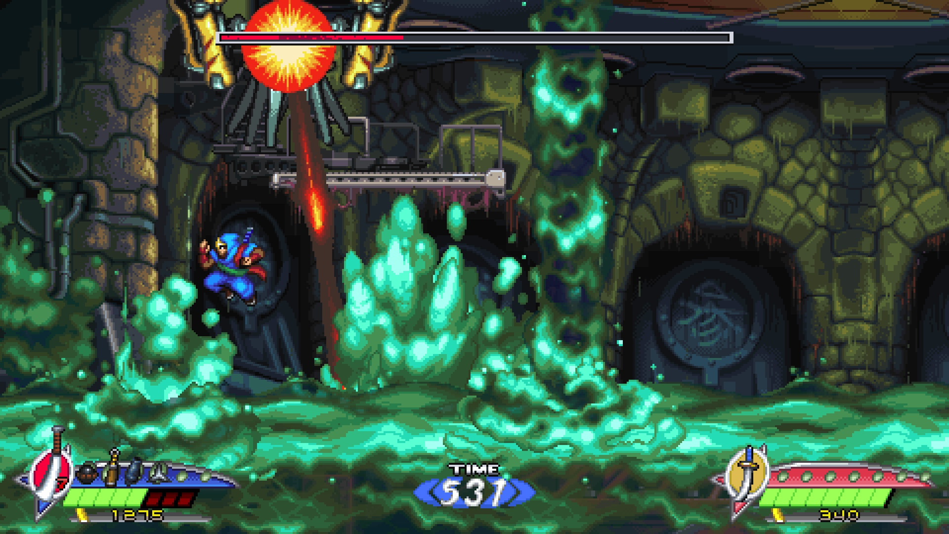 Con il trascorrere degli anni, Shadow of the Ninja ha raccolto uno zoccolo duro di fedelissimi che hanno imparato ad apprezzarne le sfumature più ostiche: pur essendo fondamentalmente diverso, il gioco era infatti noto per condividere la difficoltà brutale di Gaiden, ed a tutt’oggi resta all’altezza di tale reputazione. I protagonisti di Shadow sono più robusti di Ryu Hayabusa, ma lo sono anche i loro avversari, che richiedono molti più colpi di qualsiasi altro nemico di Ninja Gaiden per essere abbattuti. Inoltre, dispongono anche di armi a distanza o di schemi di movimento irregolari, e reagiscono in maniera adeguata quando proviamo a scavalcarli, costringendoci ad affrontare ogni schermata come un incontro separato piuttosto che un percorso a ostacoli basato sui riflessi. All’inizio di ogni partita possiamo scegliere tra due personaggi giocabili: Hayate, un ninja, e Kaede, una kunoichi, entrambi equipaggiati con una katana per gli attacchi corpo a corpo e una kusarigama per quelli a distanza. Sebbene nell’originale non vi fossero differenze sostanziali tra i due, in questa versione Kaede è più rapida ma meno forte del suo compagno. Il gioco è suddiviso in sei livelli, uno in più del progenitore, ciascuno composto da tre fasi di crescente difficoltà, caratterizzate da passaggi platform molto impegnativi. In caso di morte, ricominciamo dall’inizio del livello o dal boss finale, perdendo tutti gli oggetti raccolti. Tuttavia, dopo ripetute sconfitte, una meccanica assistenziale elargisce qualche consumabile extra per facilitare la missione. Il fatto che gli sviluppatori di questo remake siano in parte coloro che hanno lavorato all’originale trapela dal modo in cui è stato deciso cosa rivedere in ottica moderna e cosa no, e il risultato è un’ottima rilettura dal comparto audiovisivo strepitoso che guarda alle sue origini senza dimenticare le sensibilità contemporanee, regalandoci un viaggio intenso e spettacolare dall’inizio alla fine. Il nuovo character design ad opera della Dynamic Planning di Go Nagai è poi un’ultima, impagabile ciliegina sulla torta.