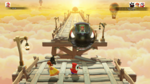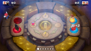 Ma non solo: oltre alla possibilità di scegliere qualsiasi tipo di mini-gioco presente nel titolo, sarà possibile partecipare ad alcune “playlist tematiche” in cui sfidare i propri amici con prove consecutive basate su un particolare tema. Nel caso della nostra prova in quel del Video Games Party, una delle playlist più interessanti era legata al tema culinario, con diversi minigiochi basati sul taglio simmetrico di un pezzo di carne, la creazione di un numero enorme di pancake a ritmo di musica e infine un’eroica scalata su una torre fatta di tramezzini. Il risultato di ognuna di queste prove andrà poi a creare una classifica finale in stelle che verranno poi accorpate – in un glorioso inno al detto “ha vinto lo sport” – in un punteggio totale che verrà poi convertito in crediti spendibili in eventuali gadget sbloccabili. L’aperitivo ideale prima di cimentarsi nelle competizioni multiplayer fino a 20 giocatori del Bowserathlon, modalità che vedrà i giocatori sfidarsi in una folle corsa alla ricerca del punteggio più alto. Ma fate attenzione: maggiore il punteggio, più alte le probabilità di essere sfidati dal temibile Bowser in una sfida rischia-tutto che potrebbe “confermare o ribaltare completamente la situazione”. Modalità che purtroppo in questa sede non abbiamo avuto modo di vivere pad alla mano, ma che non vediamo l’ora di sperimentare una volta che il gioco sarà arrivato nei negozi.