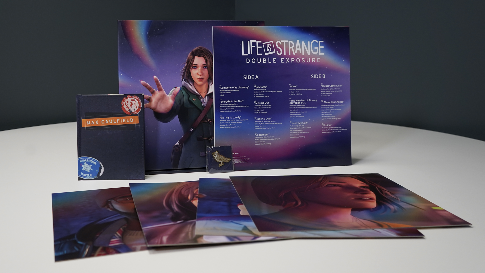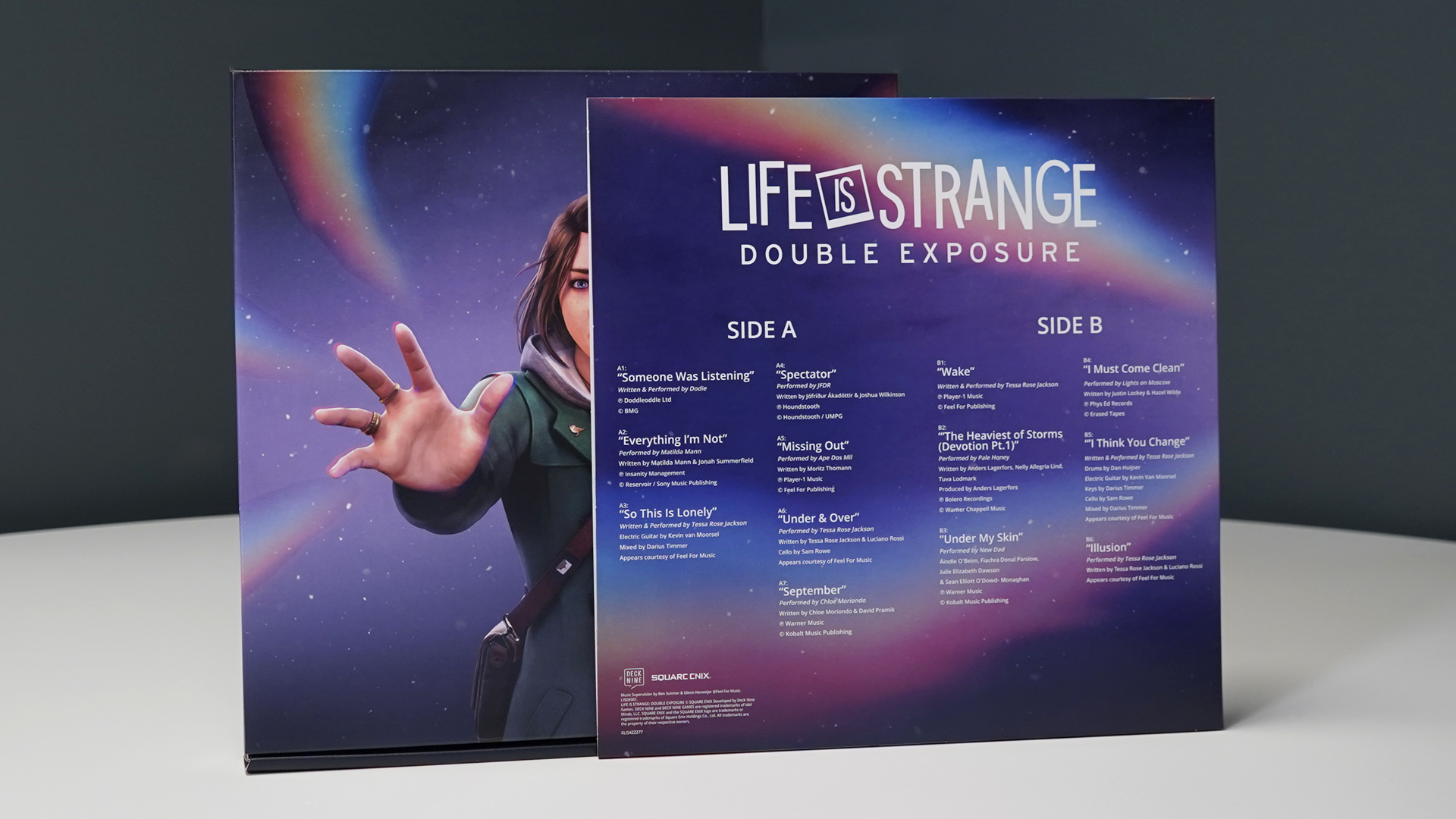 L’edizione fisica su vinile della colonna sonora è disponibile esclusivamente nella Collector’s Box di LIFE IS STRANGE: DOUBLE EXPOSURE. La Collector’s Box. include la colonna sonora su 33 giri, un mini-artbook di 32 pagine, quattro cartoline di 30 cm a due facce e una replica della spilla a forma di gufo che Max Caulfield indossa nel gioco. La Collector’s Box può essere acquistata su questo sito.