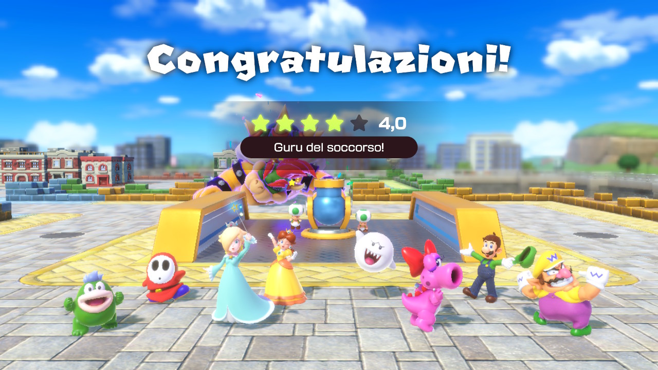 Oltre all’obiettivo principale di raccogliere stelle per avanzare nei differenti scenari, il nuovo Mario Party contiene interessanti dinamiche cooperative. Durante l’esplorazione, potremmo incontrare personaggi che ci chiederanno aiuto: completando una serie di mini-giochi a tema, potremo convincerli a unirsi alla squadra, facilitando la strada verso la meta. Il nostro successo in queste sfide permetterà di contare sul supporto di nuovi alleati per affrontare le ultime fasi del tabellone. A proposito di questi ultimi, per passare da uno all’altro è necessario accumulare almeno trenta stelle, anche se ne sono disponibili molte di più. Raccogliendone più di trenta, avremo modo di sbloccare decorazioni esclusive per agghindare Piazza Party, infondendole un tocco unico e confortevole. Oltre alla modalità principale, Jamboree offre un nutrito assortimento di alternative, dalla classica competizione alla Mario Party al Porto dei Minigiochi, dove è possibile cimentarsi in tutti quelli già sbloccati e partecipare ad una pletora di sfide quotidiane online, una vera e propria arena per mettere alla prova le abilità maturate e confrontarsi con giocatori di tutto il mondo. Tre modalità aggiuntive sfruttano i sensori di movimento per offrire esperienze uniche, come volare alla stregua di un Paratroopa, risolvere enigmi collaborativi nella fabbrica dei Toad o affrontare sfide di cucina ritmiche, tutte occasioni inedite per cimentarsi con la voglia di divertirsi in gruppo che anima Super Mario Party Jamboree e ne amplificano il carattere spiritoso e appassionante, soprattutto quando si gioca in compagnia.