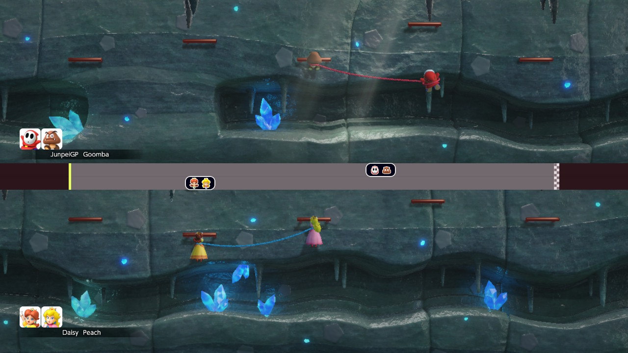 Il gioco offre due metodi principali per accumulare preziose ministelle: il primo, e più immediato, è diretta conseguenza dei numerosi mini-giochi disseminati lungo il percorso. Mentre esploriamo i tabelloni, potremmo imbatterci in un vivace pasticcere che ci invita a una sfrenata sfida di ritaglio dei biscotti, oppure in un povero Toad che ci chiede di recuperare le monete che ha perso in un corso d’acqua poco distante, percorrendolo in groppa all’amichevole Plessie. Queste vivaci attività, tratte direttamente dall’ampio repertorio di Jamboree, sono sapientemente integrate nel mondo di gioco e creano un filo conduttore spassoso e contiguo. Il successo ottenuto in ogni sfida sarà direttamente proporzionale al numero di ministelle che riceveremo, un ottimo incentivo a dare sempre il meglio di noi stessi. Ma le lucenti stelline non si ottengono solo sfidando gli altri giocatori. Esplorando l’universo di gioco, incontreremo anche una miriade di personaggi che ti affideranno piccoli compiti e missioni. Potrebbe trattarsi di una semplice ricerca di un oggetto nascosto nelle vicinanze o di una breve conversazione per risolvere un enigma. Queste attività, apparentemente semplici, sono in realtà degli strategici punti di respiro tra un mini-gioco e l’altro, spezzando la monotonia e offrendo un’opportunità per immergersi maggiormente nella storia. Alcune volte, basterà rispondere a una domanda o superare un breve quiz per ottenere una generosa ricompensa stellare.
