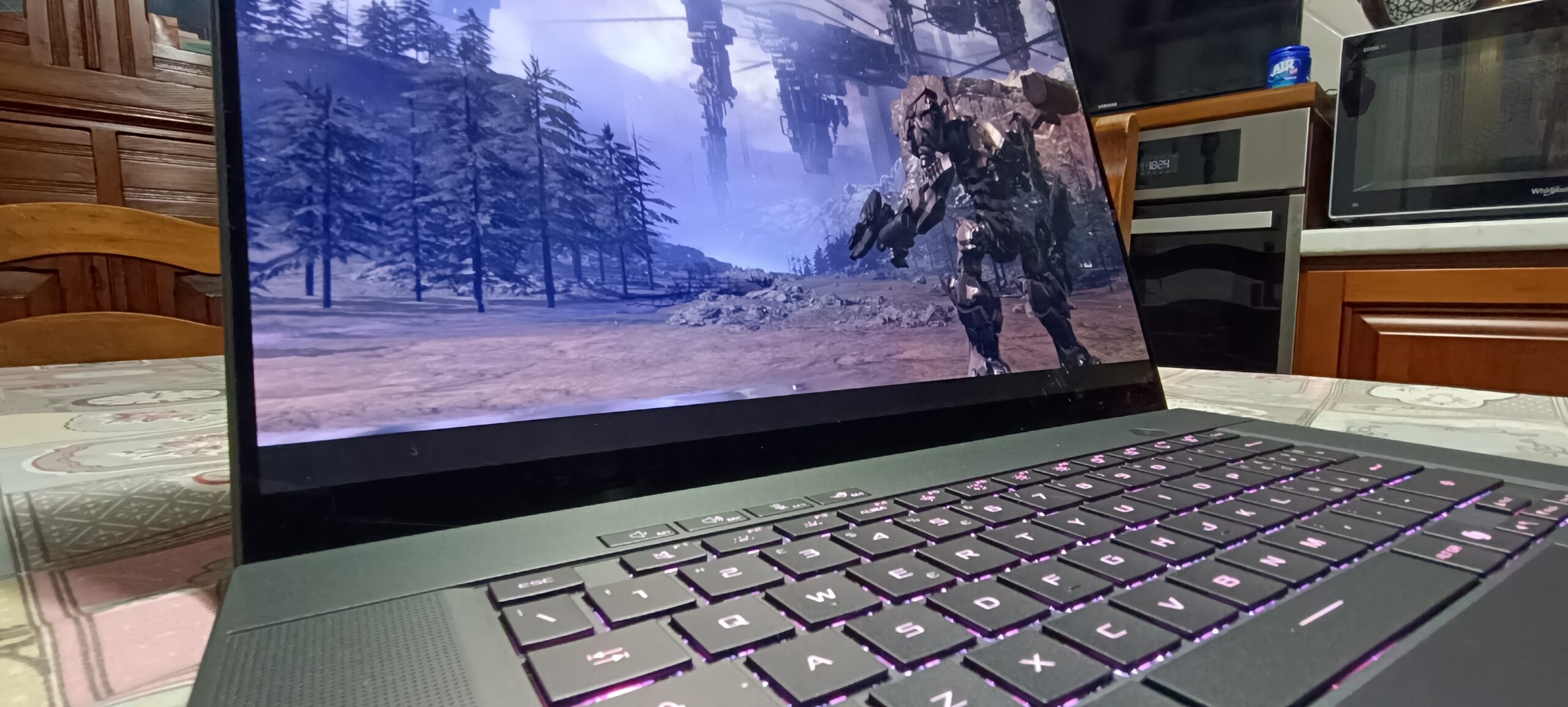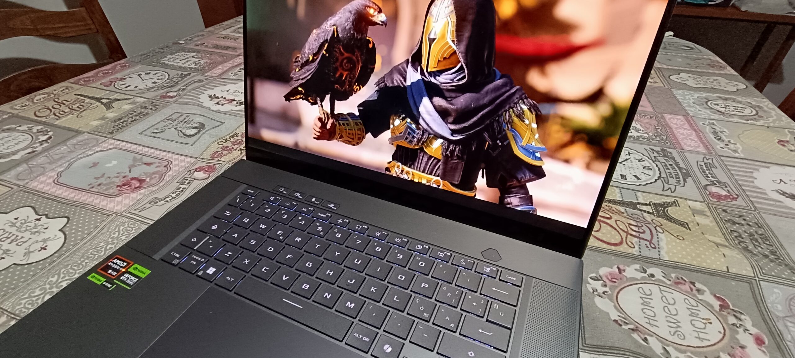 Essendo un PC coadiuvato da intelligenza artificiale, ho eseguito il benchmark Procyon Windows ML che fornisce indicazioni qualitative sulle prestazioni dei motori di inferenza AI, ottenendo un risultato di 126, il più alto che ho mai misurato per una CPU AI. In parole povere, il Ryzen AI 9 HX 370 è in grado di gestire efficacemente le computazioni locali riservate all’intelligenza artificiale, il che può tornare più o meno utile a seconda dei tipi di programmi e giochi che si eseguono sul laptop. Tornando alla carne messa sul fuoco, ossia alla parte ludica, ho eseguito un’installazione pulita degli ultimi driver NVIDIA GeForce Game Ready per poi sperimentare qualche sessione prolungata con Cyberpunk 2077, navigando poi nel benchmark integrato per eseguire alcuni test. Ho iniziato impostando la grafica con i settaggi Ray Tracing accesi, illuminazione Bassa e risoluzione 2560 x 1600, e il laptop ha raggiunto una media di 65 FPS. Ho poi aumentato le impostazioni a Ultra mantenendo tutto il resto invariato, per scendere su una media di 22 FPS, risultati di certo non straordinari ma in ogni caso rispettabili. Per curiosità, ho anche provato ad aumentare i settaggi a Folle, attivando sia Path Tracing che Ray Reconstruction, e poi ho eseguito il test raggiungendo un’onestissima media di 27 FPS, a cui molti laptop non possono nemmeno lontanamente aspirare. Per quanto sia inferiore allo standard minimo di 30 FPS al quale in molti oggi sembrano essersi ancorati, i risultati conseguiti dimostrano che abbiamo per le mani un portatile da gaming assolutamente degno di tale nome. Ciò detto, il modello Intel è stato comunque in grado di raggiungere una media di 36 FPS con le medesime impostazioni di risoluzione, dettagli e Ray Tracing, collocandosi qualche gradino più in alto nella graduatoria.