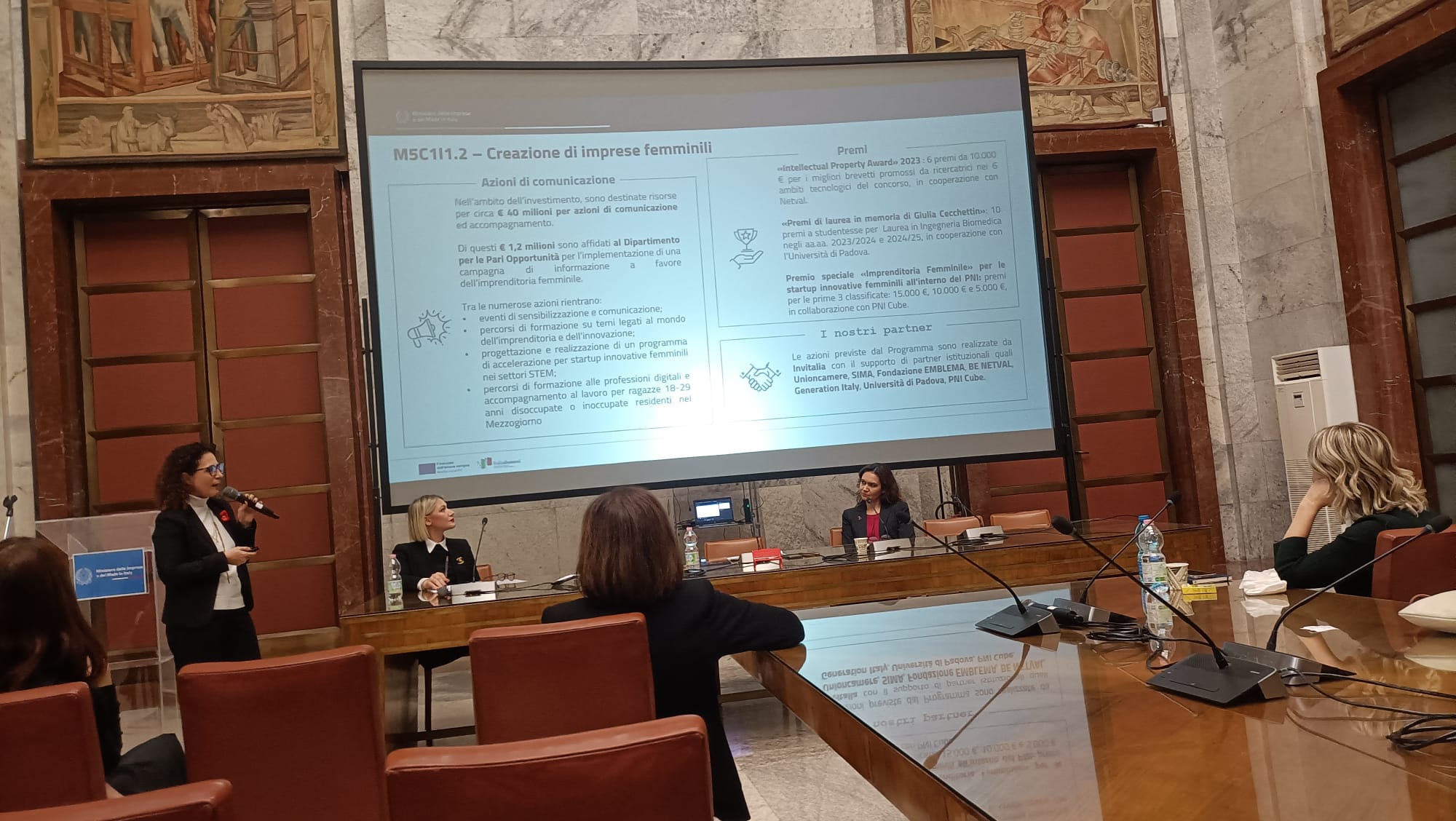 • Donatella Proto ha elencato le misure del PNRR per superare le differenze di genere. Sono stati utilizzati 16.91 miliardi per favorire l’impresa femminile e 400 milioni per favorire le imprese atraino femminile. Vengono poi elencati gli aiuti per le startup e le nuove imprese a tasso zero. Elenca, infine, anche le sfide future che riguardano un sostegno alla maternità per far rimanere le donne nel mondo del lavoro e l’abbattimento degli ostacoli per chi ha finito di studiare e vuole entrare nel mondo del lavoro.