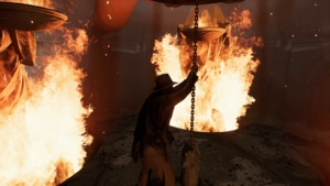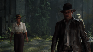 Tra un intermezzo e l’altro, talmente ben strutturati che da soli potrebbero costituire la base per almeno altri due film di Indiana Jones, di quelli fatti con criterio s’intende, c’è anche un vero e proprio gioco interattivo da approfondire, che si sviluppa principalmente su tre grandi mappe aperte dalle dimensioni ragguardevoli, lungo le quali le fasi di esplorazione libera vengono intervallate da sequenze più brevi e lineari. Seguendo la storia che ci porta a visitare questi luoghi, procederemo da un lato all’altro dei livelli sempre alla ricerca di qualcosa, da una semplice chiave per sbloccare una serie di porte a un oggetto mistico da incastonare in un punto specifico, recuperando curiosità e collezionabili lungo il tragitto. Inutile negarlo, si tratta di missioni di recupero del tipo più elementare che possiate immaginare, ma presentate in una maniera un po’ diversa dal solito: anzitutto, una volta arrivati a destinazione, spesso dovremo svolgere qualche perlustrazione non guidata per trovare il gingillo nascosto o il punto di accesso segreto di cui abbiamo bisogno. Nel migliore dei casi, queste parti esplorative mi hanno fatto sentire più come un detective archeologico che come il solito protagonista passivo obbligato a seguire una sfilza di punti di interesse; nel peggiore, ho trascorso un ammontare quasi intollerabile di minuti a cercare l’oggetto richiesto nella zona indicata, salvo infine accorgermi che la mia compagna era in piedi proprio accanto allo stesso nascondendolo dalla mia visuale. Tenetelo bene a mente, perché potrebbe capitare più spesso di quanto vorreste.