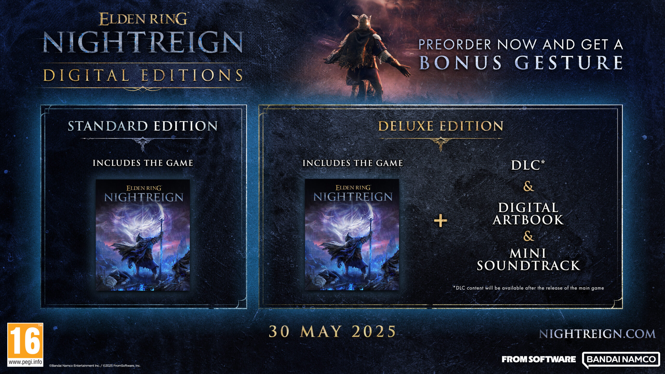 Bandai Namco Entertainment ha annunciato, tramite un video sul proprio canale YouTube, la data di uscita di Elden Ring Nightreign. Inoltre, ha annunciato che sono disponibili i pre-ordini eย i giocatori possono scegliere la loro versione preferita:
