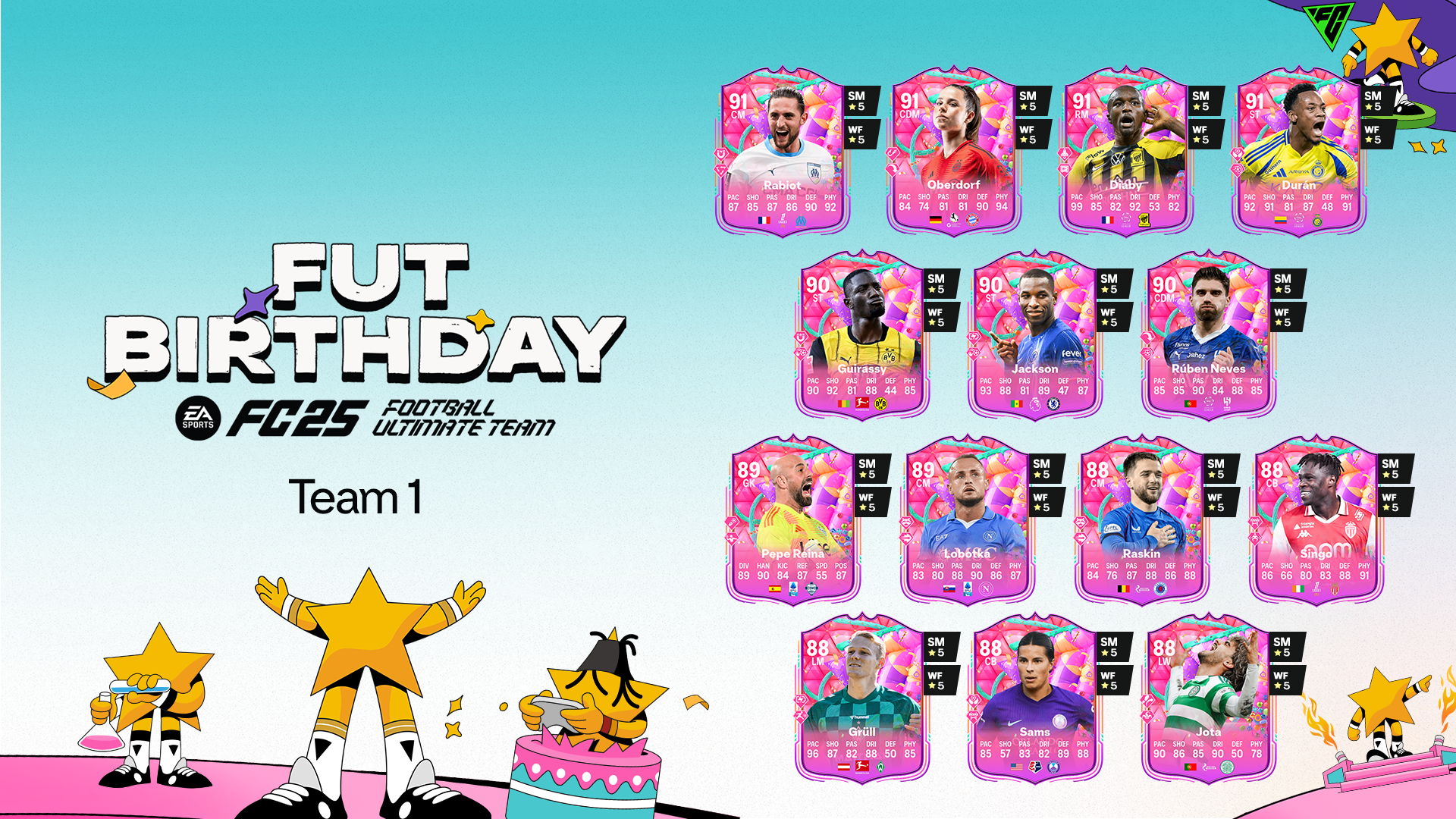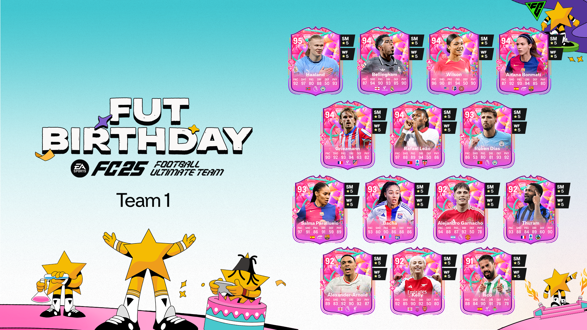 Inoltre, su canale ufficiale di Twitch è disponibile la live FC Direct FUT Birthday Celebration con l’attaccante del Liverpool FC Diogo Jota, che presenta la squadra completa del Team 1 del FUT Birthday. Sul canale è presente anche una sezione di gameplay con l’intera squadra del Team 1 dei FUT Birthday.