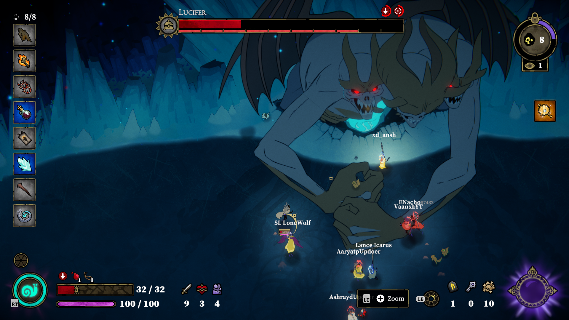 Complice la natura a porte chiuse del nostro provato, non siamo mai riusciti a incrociare una stanza di gioco che contenesse al suo interno le titolari 33 anime. Le nostre esperienze si assestano su gruppi da una dozzina, massimo una ventina, di giocatori totali, i quali venivano snelliti strada facendo dalla sconfitta definitiva di alcuni dei partecipanti presenti. Essendo lโ€™intero processo dellโ€™โ€œAscensioneโ€ ritmato dalla risoluzione delle camere di tortura, la presenza o lโ€™assenza di gamer va necessariamente a definire la velocitร  e lโ€™intensitร  di ogni singolo match.