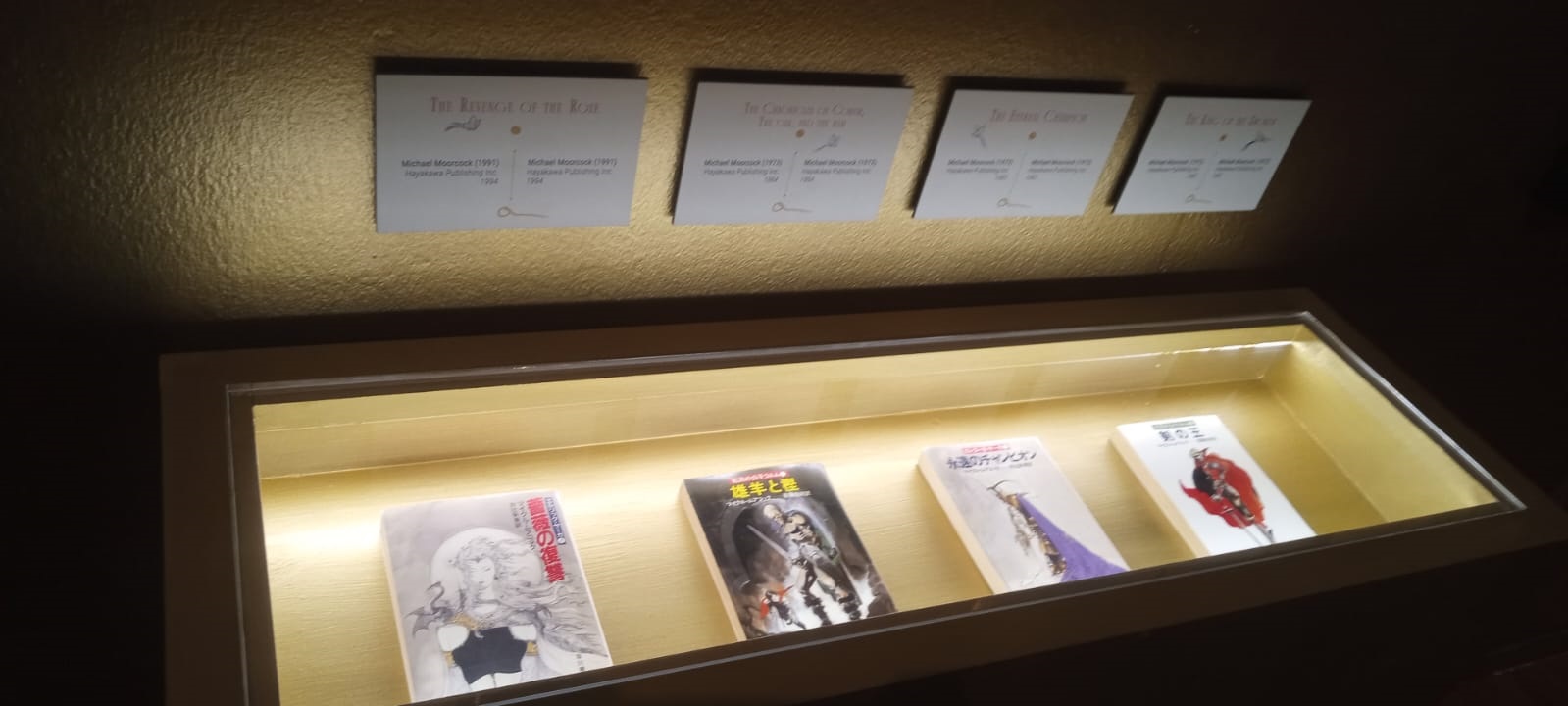 Una vera chicca eccezionale è però l’area appena precedente, dedicata ad una opera che, di fatto, ha ispirato gli stessi artwork iniziali per Final Fantasy, e primo caso in cui l’artista inizia a citare se stesso, con uno stile ormai consolidato. A Palazzo Braschi potranno infatti essere ammirate anche opere originali, mai esposte prima in Italia, si nemmeno a Milano,  che vedono Yoshitaka Amano tradurre in immagini i mondi immaginari di  Michael Moorcock, celeberrimo autore della letteratura fantastica occidentale, che conosciamo come autore di Elric di Melnibonè. Una zona espositiva eccezionale, da scoprire opera dopo opera, e che entra nel cuore. Fra l’altro, per chi non conoscesse questa sontuosa opera letteraria, il nostro spassionato consiglio è quello di avvicinarsi ad essa, ve ne innamorerete letteralmente, ne siamo sicuri. Fare un parallelo tra gli artwork disegnati per questa commissione d’arte e quelli realizzati per Square-Enix, all’epoca nota solo come Square, è veramente interessante e farà impazzire gli amanti della filologia videoludica.