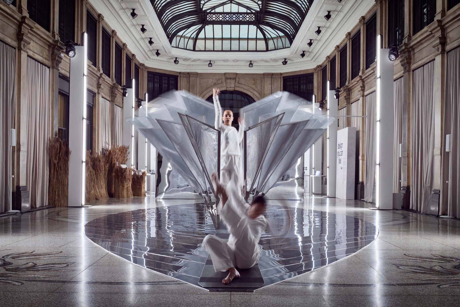 I temi della mostra Design You Can Feel sono incapsulati da un’installazione appositamente commissionata allo Studio INI. Ospitata sotto lo spettacolare soffitto in vetro curvo di Galleria Meravigli, l’installazione risponde dinamicamente al passaggio dei visitatori, la cui presenza attiva pannelli semitrasparenti simili ad ali che si aprono e si chiudono dietro di loro. Le ali, composte da un nido d’ape in alluminio e da elementi realizzati in Ceraluminum, il materiale proprietario di ASUS, coinvolgono i sensi riflettendo e assorbendo la luce. I visitatori sono invitati a interagire con la struttura mentre la attraversano. L’intera installazione rispecchia la sottile silhouette dello Zenbook richiamandone la leggerezza e imitando i sensibili meccanismi di attivazione della natura, creando un gioco di movimenti tra rivelazione e occultamento.