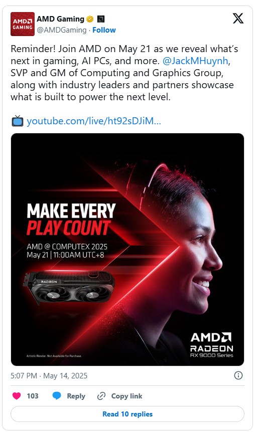 Secondo quanto svelato recentemente, AMD annuncia la data di presentazione della Radeon RX 9060 XT. Le azioni rappresentano l’edizione di riferimento, ma non saranno disponibili per l’acquisto. L’infografica condivisa da AMD sul suo account ufficiale AMD Gaming mostra una scheda grafica Radeon RX 9060 XT a doppia ventola, che presumibilmente corrisponderebbe al design di riferimento se esistesse realmente. รˆ molto probabile che AMD produca alcune di queste schede, ma non saranno disponibili per la vendita. Abbiamo visto anche il design di riferimento di AMD per la RX 9070 XT, ma รจ stato individuato molto piรน tardi rispetto al lancio.