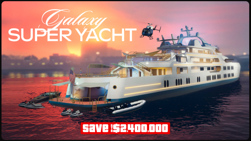 • Sconti su super yacht: se la tua anima anela alle disavventure nautiche, puoi acquistare un Galaxy Super Yacht da DockTease e montare tutte le modifiche che ti piacciono di piรน: entrambi hanno il 40% di sconto fino al 28 maggio.