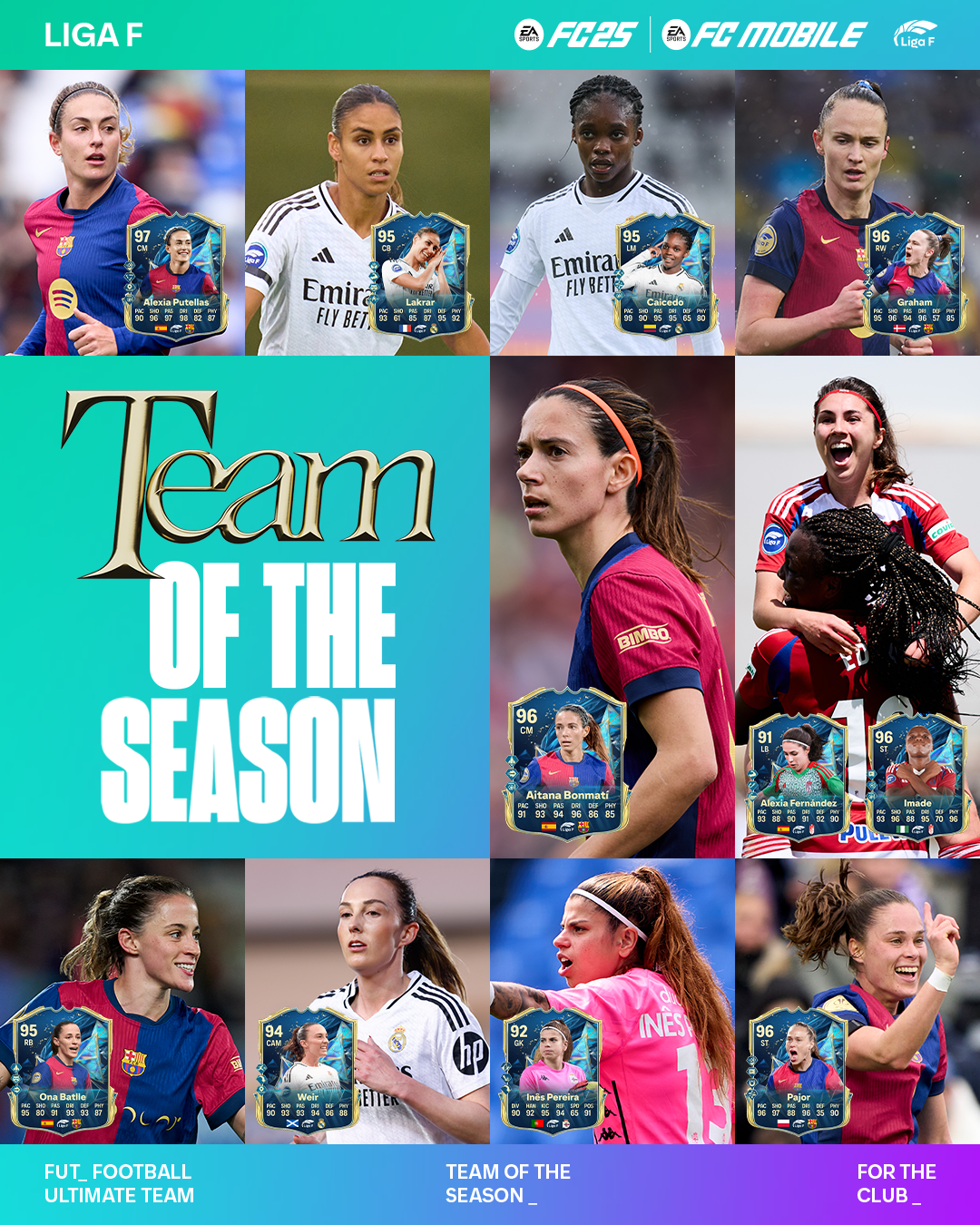 Electronic Arts annuncia la disponibilità dei giocatori TOTS della Liga, Liga POrtugal e Liga F per EA SPORTS FC 25 (trovate qui la nostra Recensione). Il titolo è disponibile su PlayStation 5, PlayStation 4, Xbox Series X/S, Xbox One, PC e Nintendo Switch.
