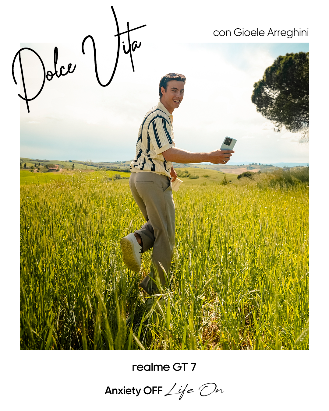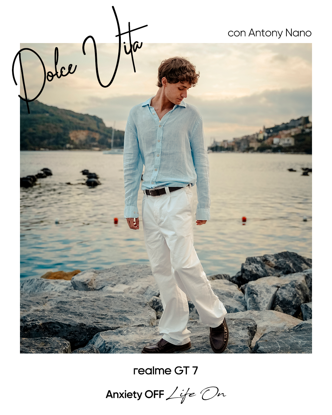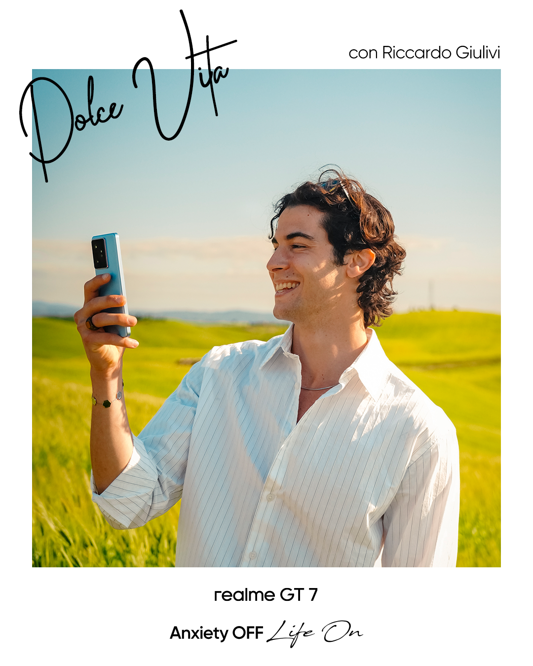 C’รจ un particolare senso di magia nell’estate: l’aria calda, la luce dorata, il suono delle onde e degli alberi che sussurrano al vento. Con “Dolce Vita” abbiamo voluto catturare questa sensazione e invitare tutti a vivere in modo piรน libero, piรน leggero, piรน vero. In un mondo in cui siamo costantemente pressati a catturare il momento โ€œperfettoโ€, spesso ci sfugge la bellezza del semplice essere presenti. รˆ qui che entra in gioco โ€œAnxiety off, Life onโ€: รจ una mentalitร  che invita a smettere di preoccuparsi di ottenere lo scatto perfetto e a godersi il momento. Con realme GT 7, catturare la bellezza della vita diventa un gioco da ragazzi, che permette di abbracciare pienamente la Dolce Vita, una vita di semplicitร , libertร  e autenticitร . I nostri talenti non si sono limitati a scattare contenuti, ma hanno vissuto l’esperienza. E realme GT 7 era lรฌ per catturare tutto, perfettamente, in modo che potessero concentrarsi sulla gioia di essere presenti, nel momento. ‘Anxiety off, Life on’ – questo รจ il cuore di questo viaggio: vivere con facilitร , catturare ciรฒ che conta e vivere veramente la bellezza che ci circonda