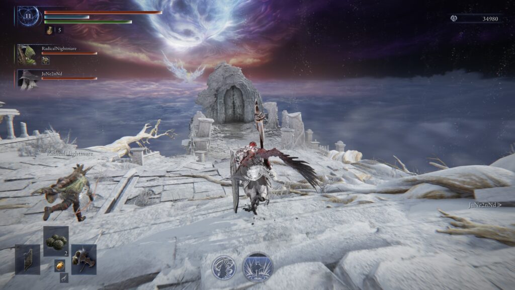 Lโ€™aspetto che, probabilmente, mi ha convinto di meno di Elden Ring Nightreing, probabilmente, รจ quello tecnico e artistico. Sia chiaro, il design degli โ€œeroiโ€ utilizzabili รจ di primissimo livello, seppur non clamoroso, e anche quello dei boss e dei nemici โ€œnormaliโ€ รจ di qualitร  (seppur quasi tutti sono riciclati dal gioco base), ma il quadro generale non รจ esattamente entusiasmante. Per quanto sia, chiaramente, contestualizzato a livello di lore e di esperienza narrativa, la scelta di ambientare lโ€™esperienza in luoghi che sanno di giร  visto rende, inevitabilmente, appiattisce lโ€™impatto audiovisivo, da sempre uno dei punti di forza dellโ€™azienda nipponica. Questo, ovviamente, non รจ riferito ai boss principali, che ho trovato a dir poco spettacolari, tanto sul piano realizzativo quanto su quello della direzione artistica. Non ho apprezzato la scelta, perรฒ, di rendere tutta lโ€™esperienza a un bioma praticamente unico, che si arricchisce con il passare delle ore di nuove porzioni, ma che non riesce mai a smorzare quella sensazione fastidiosa di trovarsi sempre nello stesso, identico, punto. Sul fronte tecnico, il lavoro compiuto da FromSofware puรฒ considerarsi discretamente riuscito. Pur considerando la natura cross-gen del gioco, che arriverร  anche su PS4 e Xbox One, il risultato finale รจ sicuramente positivo, senza particolari lodi e senza alcun infamia. Ho potuto testare il gioco su PlayStation 5 โ€œlisciaโ€, che offre le solite due modalitร  grafiche: fluiditร  (prestazioni) e qualitร .