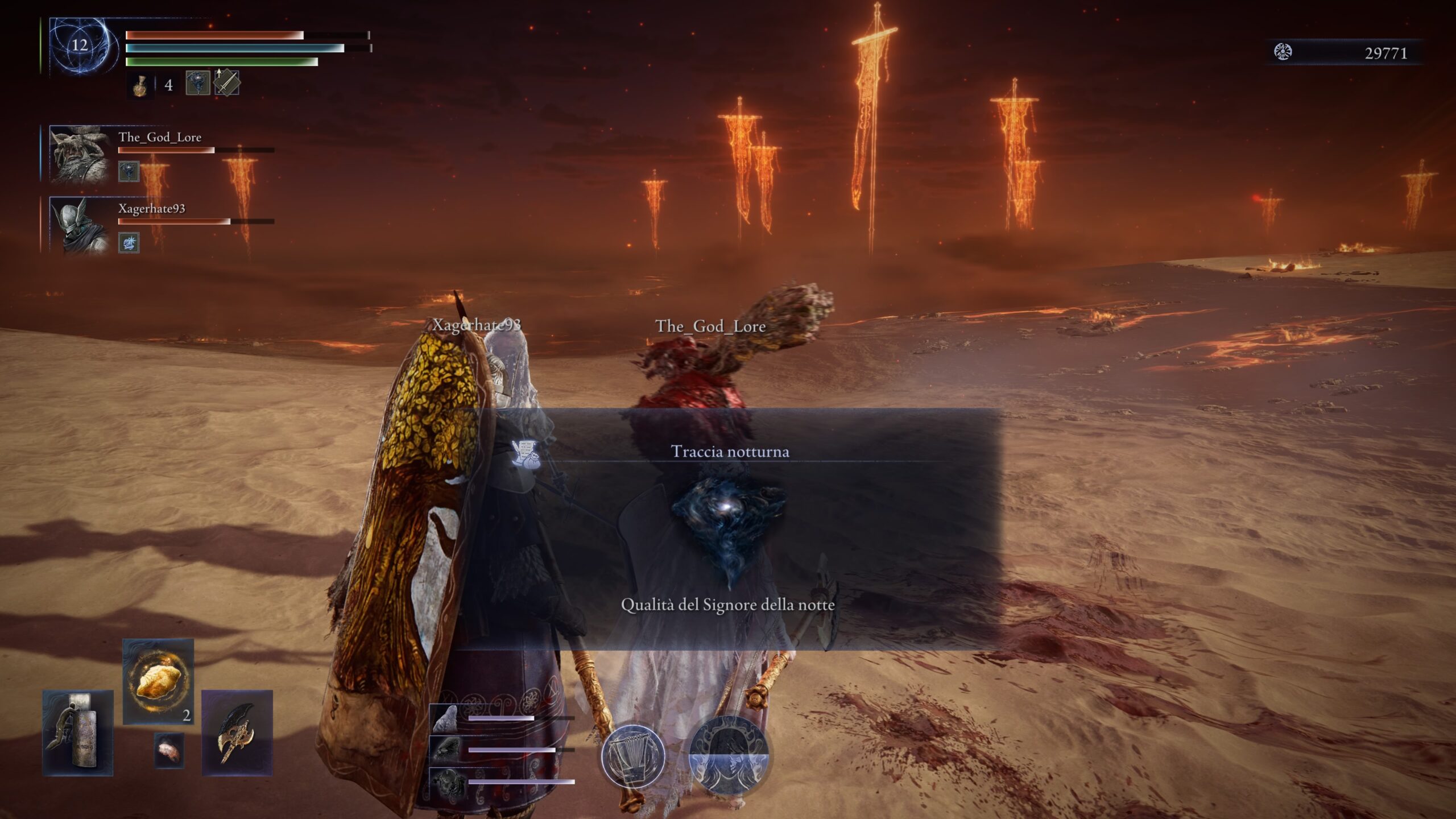 Ovviamente, il core dellโ€™esperienza di gioco รจ il gameplay. Elden Ring Nightreing vuole trascinare lโ€™esperienza ludica al di fuori del quadro complessivo dei prodotti del genere, vuole in qualche modo mettere nelle mani del giocatore tutta quella poesia di sangue, dolore e di morte che riesce a donare soltanto un souls-like di From, e lo fa con grande intelligenza e sapienza ludica. Lโ€™incipit รจ davvero molto semplice: un team di tre giocatori, sia amici organizzati sia messi insieme dal matchmaking, uniscono le forze per sconfiggere i signori della notte, e, in realtร , la notte stessa. Le missioni si strutturano, come sappiamo, sullโ€™arco di piรน giorni, e ogni giorno รจ โ€œbloccatoโ€ dalla presenza di un nemico potente da sconfiggere, che porta la notte con sรฉ, una notte oscura, che si dirama fino alla morte del boss di turno e che lascia spazio, successivamente, a un nuovo e minaccioso giorno da portare avanti. ร‰ una formula, sulla carta, molto semplice, ma posso garantirvi due cose: non รจ affatto semplice come si pensa; รจ unโ€™idea potenzialmente geniale. Durante la mia prova, ho potuto testare il gioco sia in singolo (รจ possibile avviare le missioni anche senza matchmaking), affidandomi al matchmaking, dunque dividendo la scena con alleati casuali, sia e soprattutto in compagnia di colleghi e amici, con i quali ho condiviso successi e tante imprecazioni.