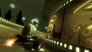 Un particolare sulla mappa di gioco: in Mario Kart World è rappresentata da un render in tempo reale e dall’alto della visuale giocatore. In modo da non perdere nessun segreto nascosto.