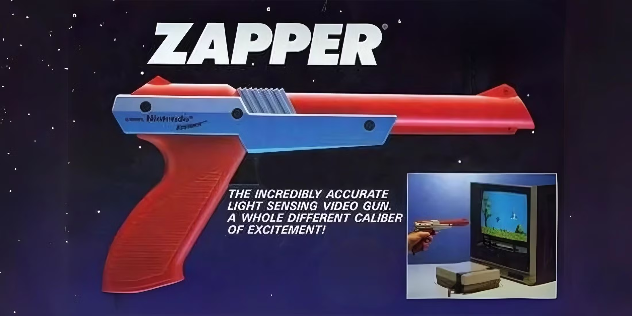 Per chi fosse troppo giovane per ricordarla, la Zapper era una pistola ottica che permetteva di puntare direttamente allo schermo per colpire bersagli o interagire con l’ambiente di gioco. Funzionava con quasi tutti i televisori dell’epoca grazie a un ingegnoso ricevitore interno in grado di rilevare se si stava mirando correttamente. Fu uno degli accessori che contribuirono al successo travolgente del NES, soprattutto in Nord America.