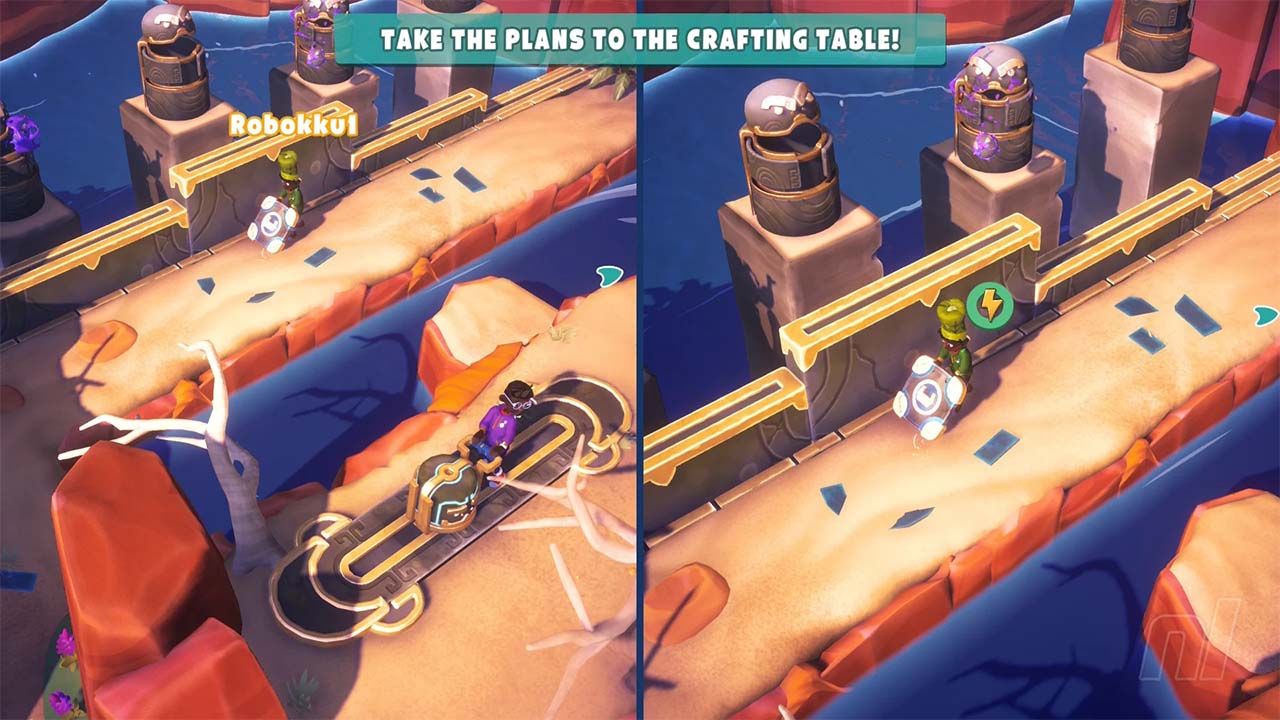 Intendiamoci: il franchise di Survival Kids non ha mai proposto un impasto survival complesso, preferendo un gameplay piรน immediato dapprima per limiti tecnici della console di riferimento, poi come cifra stilistica sempre piรน marcata. Su Switch 2, infine, lโ€™identitร  di โ€œSurvival iperleggeroโ€ ha evidentemente preso il sopravvento, al punto che quasi la definizione stessa di โ€œgioco di sopravvivenzaโ€ ci sembra un poโ€™ stiracchiata. Il nostro personaggio deve e puรฒ bere, mangiare cucinare. Si craftano oggetti e si raccolgono risorse, che vanno con fatica trasportate in giro per le aree da sbloccare man mano. Si puรฒ giocare da soli o con fino a tre amici connessi via internet o in locale, per dividersi i compiti o semplificare lโ€™approvvigionamento di oggetti piรน pesanti, e il loro spostamento dal punto di raccolta agli accampamenti. In effetti, รจ proprio giocando con qualcuno che Survival Kids mostra al meglio il suo nuovo corso piรน rilassante, metodico e lento, a discapito della difficoltร  e della soddisfazione derivante dal โ€œfarcelaโ€ arrabattandosi con quel che si trova in giro.ย