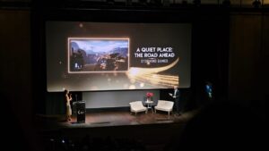 Qui sotto potete vedere alcuni scatti dalla serata: da sinistra a destra Bad Vices Games, Marco Minoli, Pietro de Grandi, e poi i cinque candidati al Best Italian Game, e l’annuncio di A Quiet Place: The Road Ahead come vincitore.
