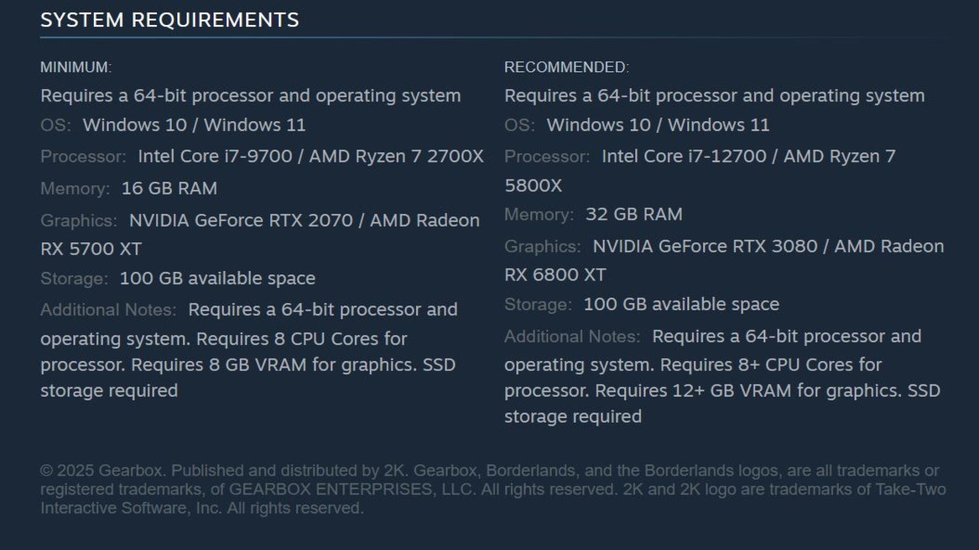 Borderlands 4, il nuovo capitolo della serie, uscirร  in tutto il mondo il 12 settembre 2025 su PlayStation 5, Xbox Series X/S e PC tramite Steam ed Epic Games Store. Lโ€™uscita su Nintendo Switch 2 sarร  piรน avanti, sempre nel corso del 2025. Ricordiamo che i pre-ordini sono aperti. 2K e Gearbox Software hanno dettagliato i requisiti della versione PC, tramite Steam.