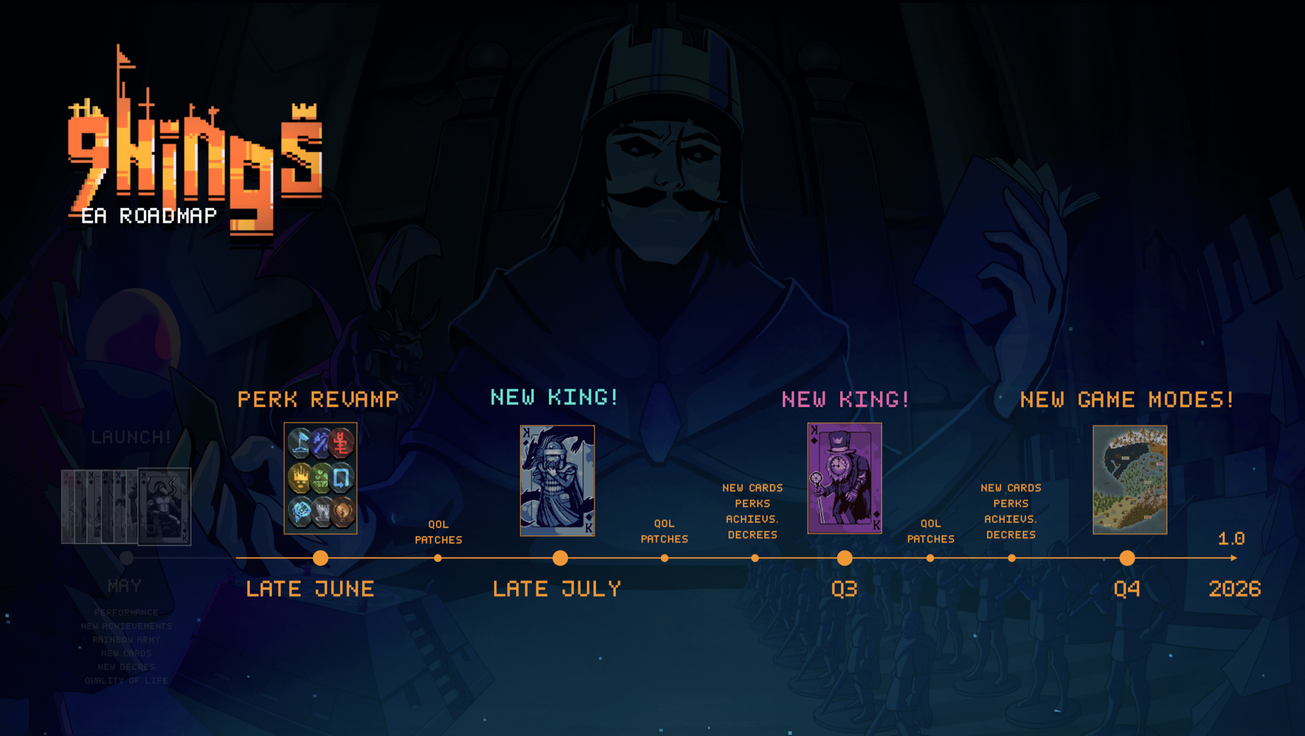 Il publisher Hooded Horse e il team di sviluppo Sad Socket hanno rivelato i prossimi piani per 9 Kings, il loro gioco di strategia roguelite che ha venduto oltre 400.000 copie nel suo primo mese di accesso anticipato, rappresentando uno dei giochi di maggior successo sviluppato da un team brasiliano.