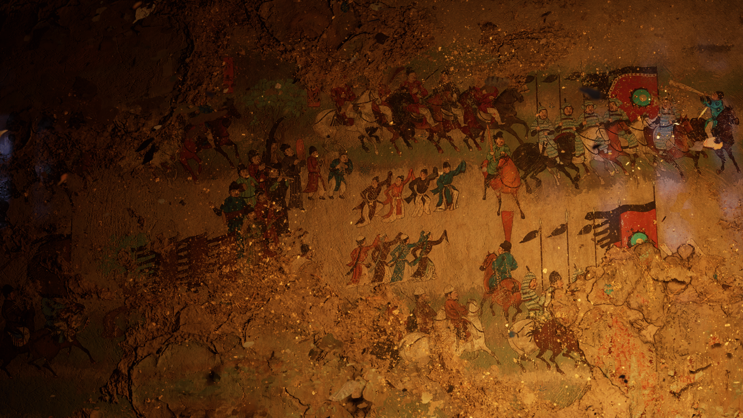 Anche le ambientazioni storiche si distinguono per varietà e dettaglio: villaggi fortificati, oscure catacombe decorate con statue e affreschi, ogni elemento trasmette un forte senso di autenticità. In particolare, colpisce un’inquadratura in cui un enorme Buddha scolpito nella roccia domina un canyon desertico: una scena mozzafiato per maestosità e ricchezza di dettagli.