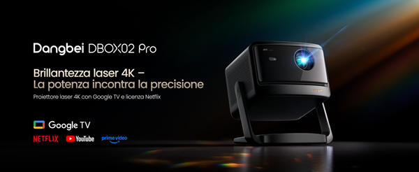 Dangbei, azienda innovativa nel settore dell’intrattenimento intelligente, ha annunciato il lancio di DBOX02 Pro, un proiettore laser 4K all’avanguardia che unisce prestazioni cinematografiche e adattabilitร  intelligente. Grazie alla tecnologia LaserVibe, al supporto integrato ed a InstanPro AI Image Setup, DBOX02 Pro trasforma qualsiasi spazio in un home theater straordinario. Il Dangbei DBOX02 Pro รจ ora disponibile su Amazon (US/UK/CA/DE/FR/ES/IT) e sulย sito web ufficiale di Dangbei al prezzo consigliato di 1.499 โ‚ฌ.ย Offerta speciale di lancio: usa il codice DBOX02PRO per acquistarlo a โ‚ฌ 1.424, valido fino al 7 luglio.