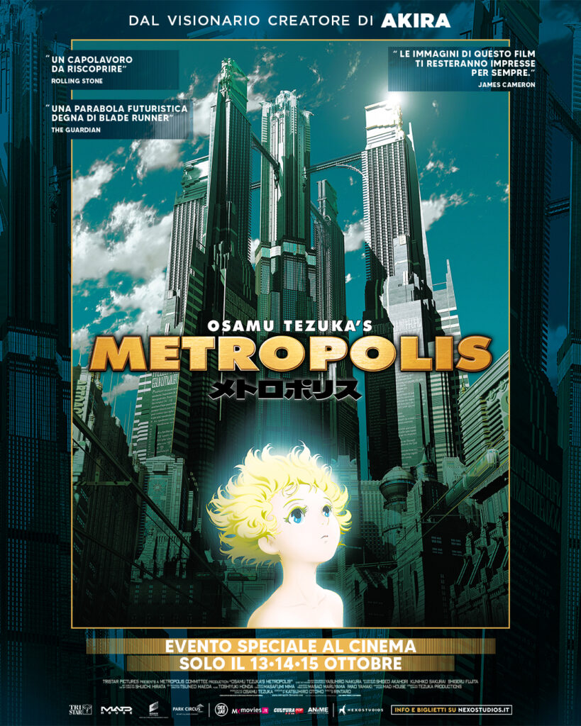 Dopo lo straordinario successo di AKIRA, che ha conquistato oltre 55.000 spettatori in sala, arriva al cinema un altro capolavoro scritto dal visionario Katsuhiro ŌtomoMETROPOLIS, un classico dell’animazione giapponese che fonde meraviglia visiva e profonda riflessione sociale. L’appuntamento nelle sale per i fan è per il 13, 14 e 15 ottobre, quando saranno tutti invitati a riunirsi per ritrovare su grande schermo un altro capostipite delle anime giapponesi in versione restaurata (elenco sale a breve su nexostudios.it e prevendite aperte dal 18 settembre). METROPOLIS sarà il primo appuntamento della nuova stagione di Nexo Studios Anime al Cinema, cui seguirà TOKYO GODFATHERS, il miracolo di Natale firmato dal genio visionario Satoshi Kon che tornerà sul grande schermo come evento speciale nelle sale solo il 24, 25, 26 novembre (apertura prevendite a partire dal 23 ottobre).