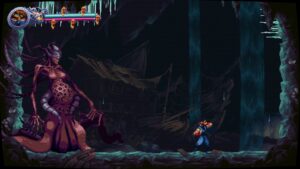 Qui la struttura è classica, anzi, orgogliosamente tale: progressione a livelli dalla difficoltà crescente, segreti nascosti tra le pieghe dello scenario e un negozio, con l’immancabile Muramasa , dove acquistare potenziamenti. Un ritorno alle origini che non si limita alla superficie, ma che affonda le radici in un tempo in cui ogni pixel contava e ogni salto poteva essere fatale.