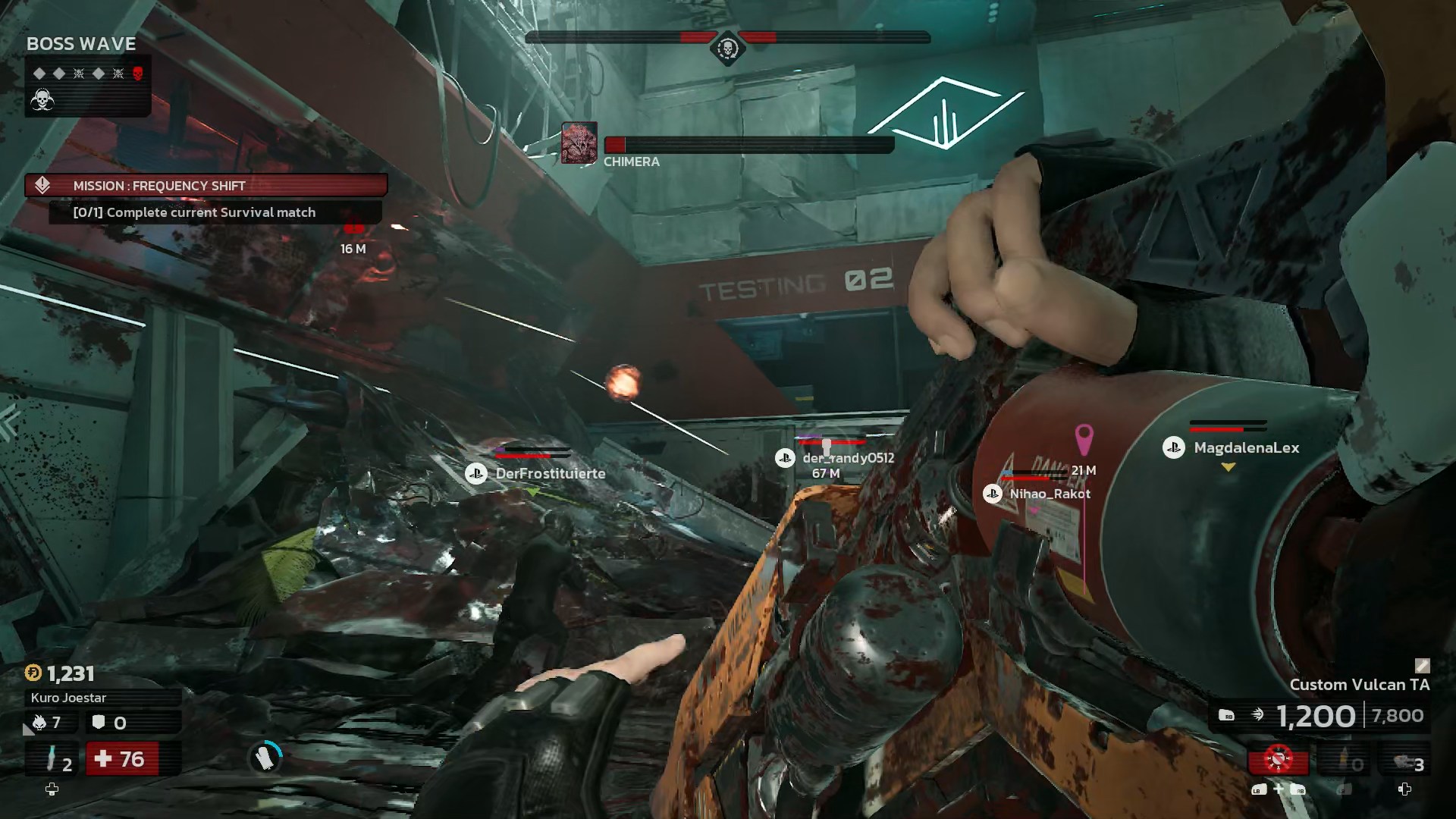 Il multiplayer a sei tende a essere molto caotico. Sia perché lo schermo è pieno di schizzi di sangue ed esplosioni, sia perché il motore grafico fatica a reggere l’insieme.