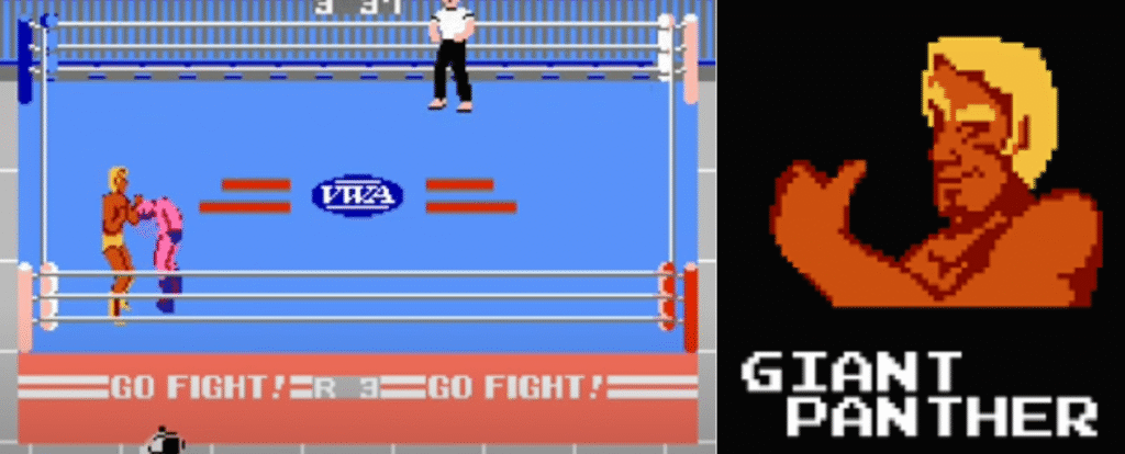 Pur non sfoggiando i tipici mustacchi, il personaggio di Giant Panther visto nel mitico Pro Wrestling (NES, 1986) viene comunemente inquadrato come una delle prime apparizioni ufficiose di Hulk Hogan nel mondo dei videogame. In passato, vi fu chi azzardò che si trattasse in realtà di un omaggio a Ric Flair, un altra icona del mondo del wrestling, ma lo slip giallo in pendant con gli stivali fugarono ogni successivo dubbio. La presenza di un lottatore più o meno identico ad Hulkster sarebbe in ogni caso stata una costante nella maggior parte dei giochi di wrestling prodotti negli anni ’80, che si trattasse di prodotti destinati al mercato console o alla sfera dei Personal Computer.