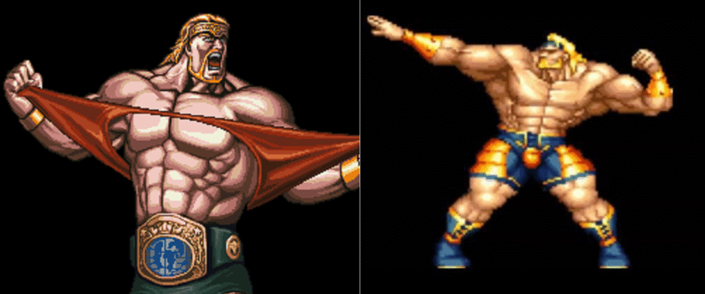 Nella grande parata dei sosia videoludici di Hulkster, non poteva mancare l’avventurosa versione bionica proposta da SEGA in Streets of Rage 3. Al netto di qualche capello in meno e del cupo esoscheletro metallico, il prode Zan faceva del resto ben poco per celare la sospetta somiglianza col wrestler più famoso di tutti i tempi. Al di là dei mustacchi e dello sguardo minaccioso, le affinità erano riscontrabili sia nella stazza che nella tipica abbronzatura color cuoio: un vezzo che il vero Hogan amava sfoggiare anche in inverno pieno, rafforzando l’idea che provenisse davvero da Venice Beach in California!