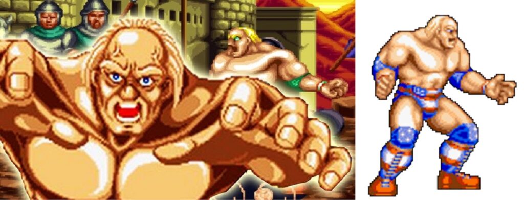 Formidabile boss finale di Fatal Fury 2 (1992) e personaggio ricorrente nella rispettiva saga con annesso cameo in The King of Fighters ’96, questo colosso teutonico dai raffinati gusti musicali trovava, manco a dirlo, in Hulk Hogan la sua principale fonte d’ispirazione. A rimarcarne la somiglianza non troviamo solo i consueti baffi dal taglio magari più sobrio, ma anche e soprattutto la lucente armatura dorata che, unita alle braghe color cremisi, rievocava il classico abbinamento giallo/rosso che caratterizzava lo storico costume del nostro titano made in USA.