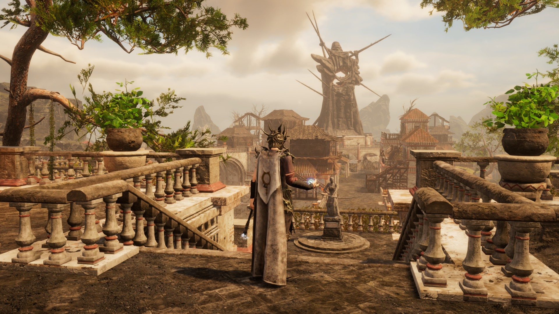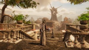 La direzione artistica è uno degli aspetti più riusciti del gioco. L’universo di Tainted Grail The Fall of Avalon è una meraviglia di design tenebroso e grottesco, con paesaggi che spaziano da brughiere desolate a imponenti creazioni architettoniche ispirate a un immaginario quasi gigeriano. Gli artwork concettuali, visibili nelle schermate di caricamento, sono al tempo stesso magnifici e inquietanti, dunque è un peccato che tutta questa ambizione visiva si scontra con una realizzazione tecnica non sempre all’altezza. Alcune texture risaltano in negativo per la loro datata semplicità e, in generale, il comparto grafico non raggiunge il livello di pulizia e dettaglio dei titoli tripla A più recenti come Cyberpunk 2077 (dopo la tonnellata di patch che hanno seguito il disastroso lancio, s’intende) o The Witcher 3. Ciò non impedisce agli scenari e ai panorami di essere visivamente affascinanti, tanto che è possibile acquistare in-game un taccuino sul quale abbozzare gli scorci più interessanti per visualizzarli in seguito, ma è un aspetto che i giocatori più esigenti potrebbero notare. A volte si percepisce un’eccessiva frammentazione del mondo di gioco in macro aree distinte, un particolare in grado di sospendere l’illusione della scoperta costante, anche se la possibilità di spostarsi rapidamente tra i punti chiave raggiunti compensa in parte tale limite.
