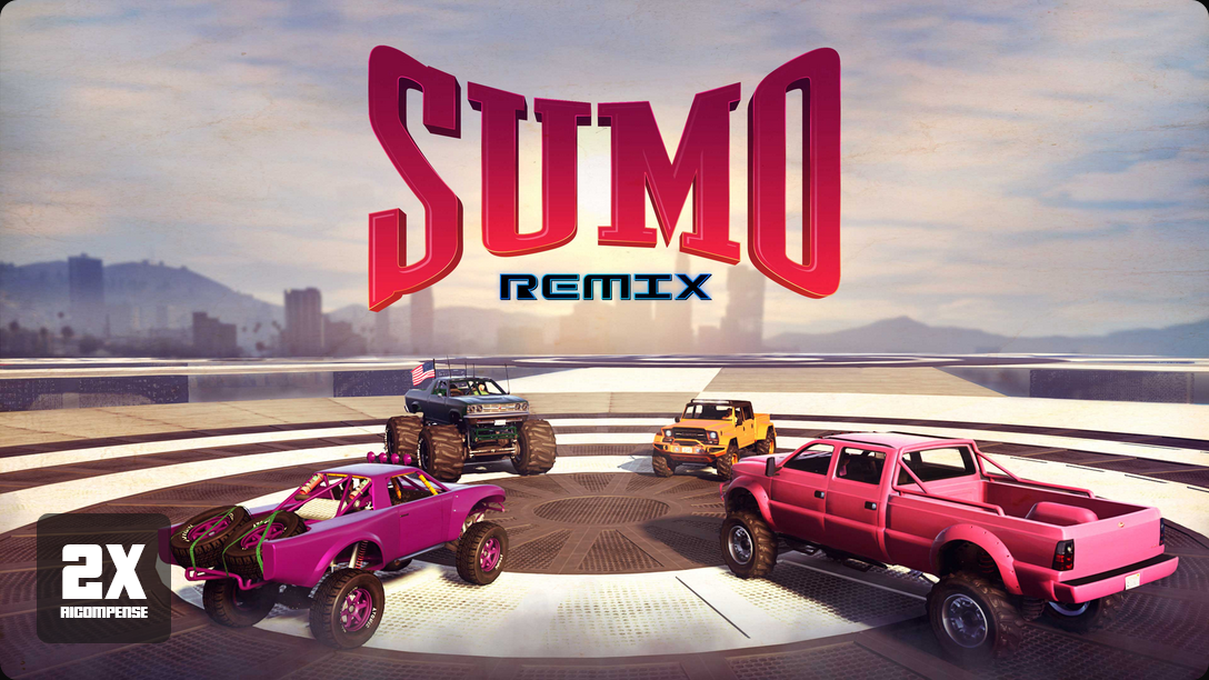 • Sumo (Remix) โ†’ GTA$ e RP doppi fino al 27 agosto, dove l’obiettivo รจ restare in una zona sicura sempre piรน piccola scacciando gli altri.