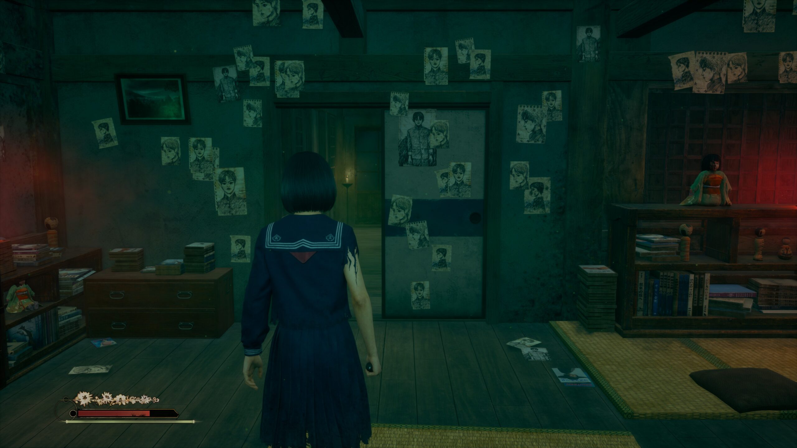 Inoltre, quasi tutti gli oggetti che troverete hanno una duplice funzione: possono essere usati per ricaricare la salute, la stamina o la sanità mentale, oppure possono essere sacrificati per ottenere punti fede, la valuta di gioco. Con questi punti è possibile non solo recuperare sanità mentale, ma anche acquistare Omamori, potenti amuleti che conferiscono bonus passivi, o potenziare le quattro abilità del personaggio, in combinazione con una tavoletta Ema. Questa meccanica è un tentativo coraggioso quanto rischioso negli ingranaggi di un survival horror.