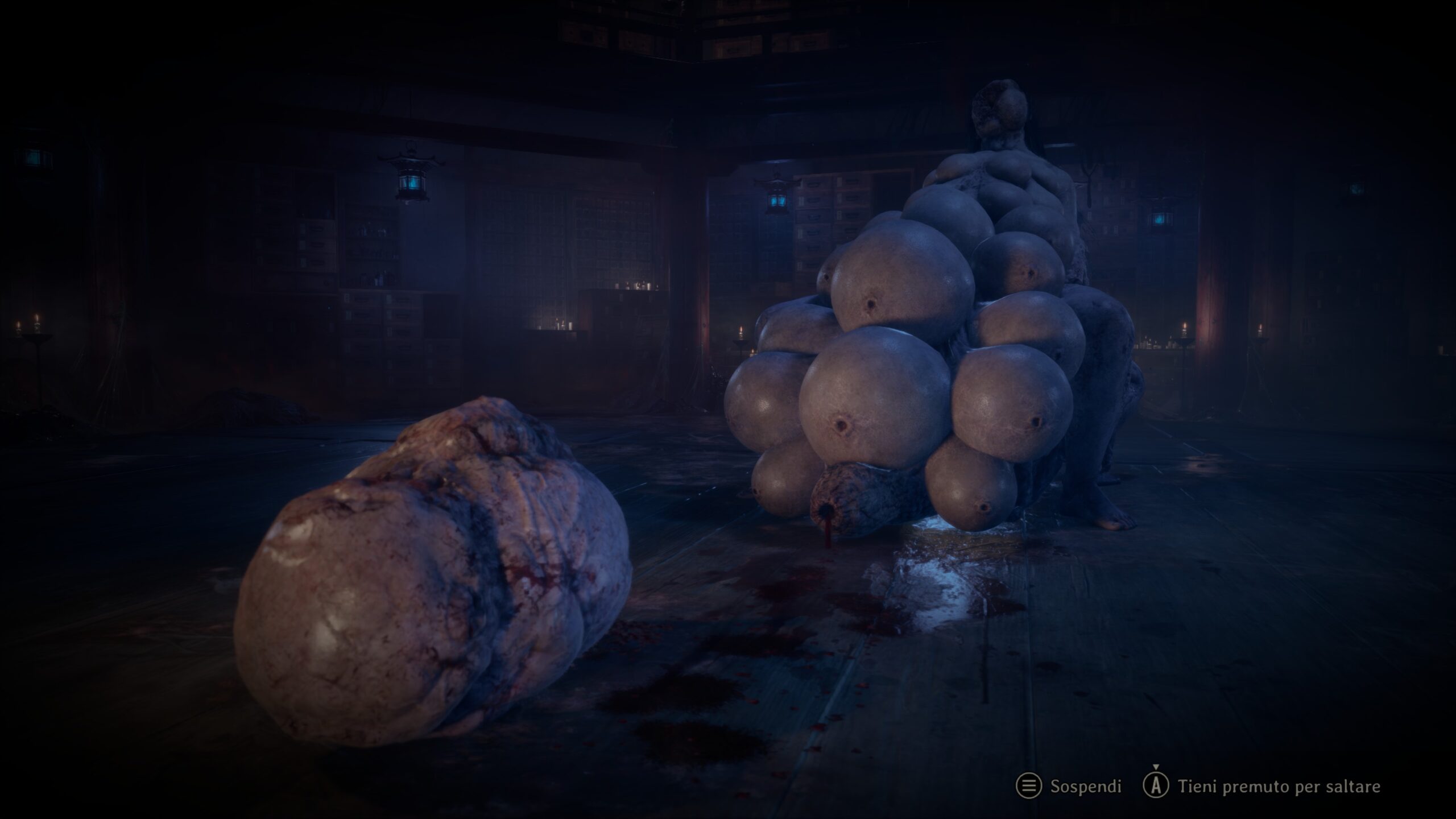 Dal punto di vista artistico e tecnico, la grafica rappresenta uno dei suoi maggiori punti di forza. L’ambientazione è tanto spettacolare quanto terrificante, riuscendo a trasmettere un senso di claustrofobia anche in ampi spazi aperti. L’orrore si discosta dai cliché, attingendo invece al folklore giapponese per creare creature grottesche e di una perversa eleganza. Sotto il profilo tecnico, il gioco, sviluppato con l’Unreal Engine 5, mi ha sorpreso positivamente per la sua eccezionale stabilità, riducendo al minimo problemi comuni come lo stuttering e mantenendo un frame rate stabile.