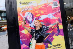 Durante la nostra demo all’interno della piccola installazione dedicata a Magic The Gathering posizionata al centro di CityLife abbiamo avuto modo di partecipare ad un rapido sparring match con un altro membro della stampa, seguendo un formato speciale rivolto agli utenti ideali dei Mazzi di Benvenuto presentati poco fa, utilizzando uno dei due mini-deck presenti al loro interno per avere un assaggio di ciò che i giocatori più dediti staranno già sperimentando sui tavoli da gioco. In particolare, questa partita ci ha dato modo di scoprire alcune delle novità all’interno delle meccaniche di gioco e che – come in ogni espansione dedicata a Universes Beyond – introduce nuove abilità o ne rielabora alcune provenienti dal passato del gioco per contestualizzarle all’interno dell’universo protagonista del set. Tra i vari esempi che possiamo fare, troviamo le abilità relative al mazzo bianco e all’archetipo Ragno, una strategia che punta a rinforzare le proprie unità aggiungendo ulteriori buff nel momento in cui un’abilità o un incantesimo viene utilizzato su una creatura ragnesca come Spider-Man. D’altro canto, carte come Zia May e Mary Jane fungeranno da supporto per tale archetipo pur non facendone parte e al tempo stesso potranno essere impiegate in altri tipi di mazzi in quanto sono in grado di offrire buff all’attacco e alla costituzione di una creatura piuttosto importanti.