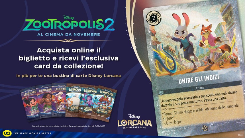 • Una card Lorcana da collezione in esclusiva UCI dedicata a “Zootropolis 2”