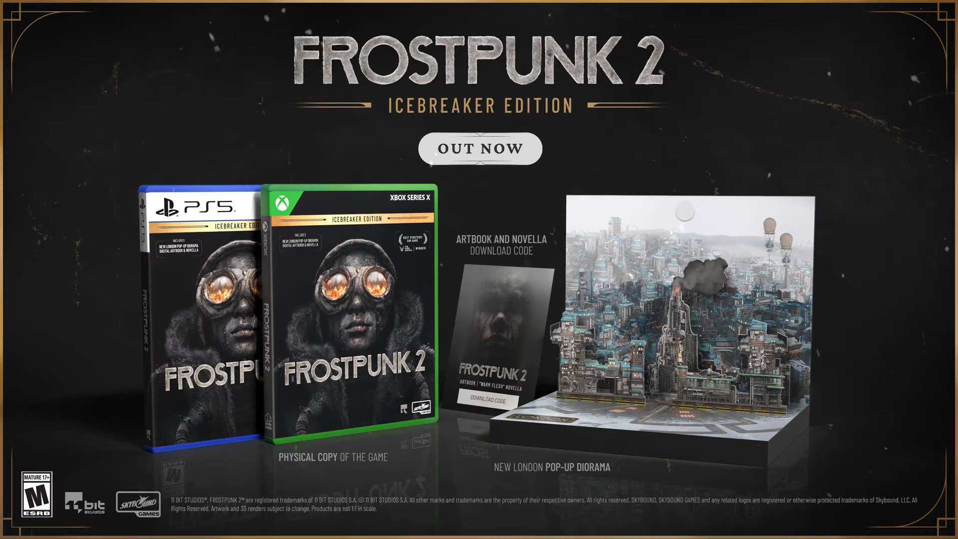 Frostpunk 2: Icebreaker Edition (per PS5 e Xbox Series X/S) include il gioco completo su disco, un diorama pop-up di New London realizzato con grande cura, la gelida novella digitale Warm Flesh e un artbook digitale dietro le quinte che racconta la creazione di questo mondo spietato.