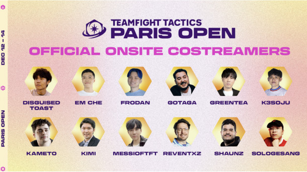 Il primo Open in Europa di Teamfight Tactics sta per arrivare nella capitale francese dal 12 al 14 dicembre al Paris Expo Porte de Versailles. Sarà l’Open più grande di sempre, che riunirà oltre 750 concorrenti da tutto il mondo pronti a contendersi la Cintura dello Stratega e un primo premio di 100.000 $. Ma il Paris Open non è solo una competizione: è una festa per la community di TFT. Oltre all’evento principale, giocatori e fan potranno tuffarsi in eventi secondari, tra cui il Torneo competitivo 4v4 e le Partite su richiesta. Una coinvolgente esperienza di TFT, che include un Artist Alley, cosplayer del set Storia e leggende, gruppi di visione insieme ai co-streamer, incontri con la community e, naturalmente, servizi fotografici con Pinguì e Choncc. A competere anche il player italiano Lorenzo “BALOTELLI777” Foderini.