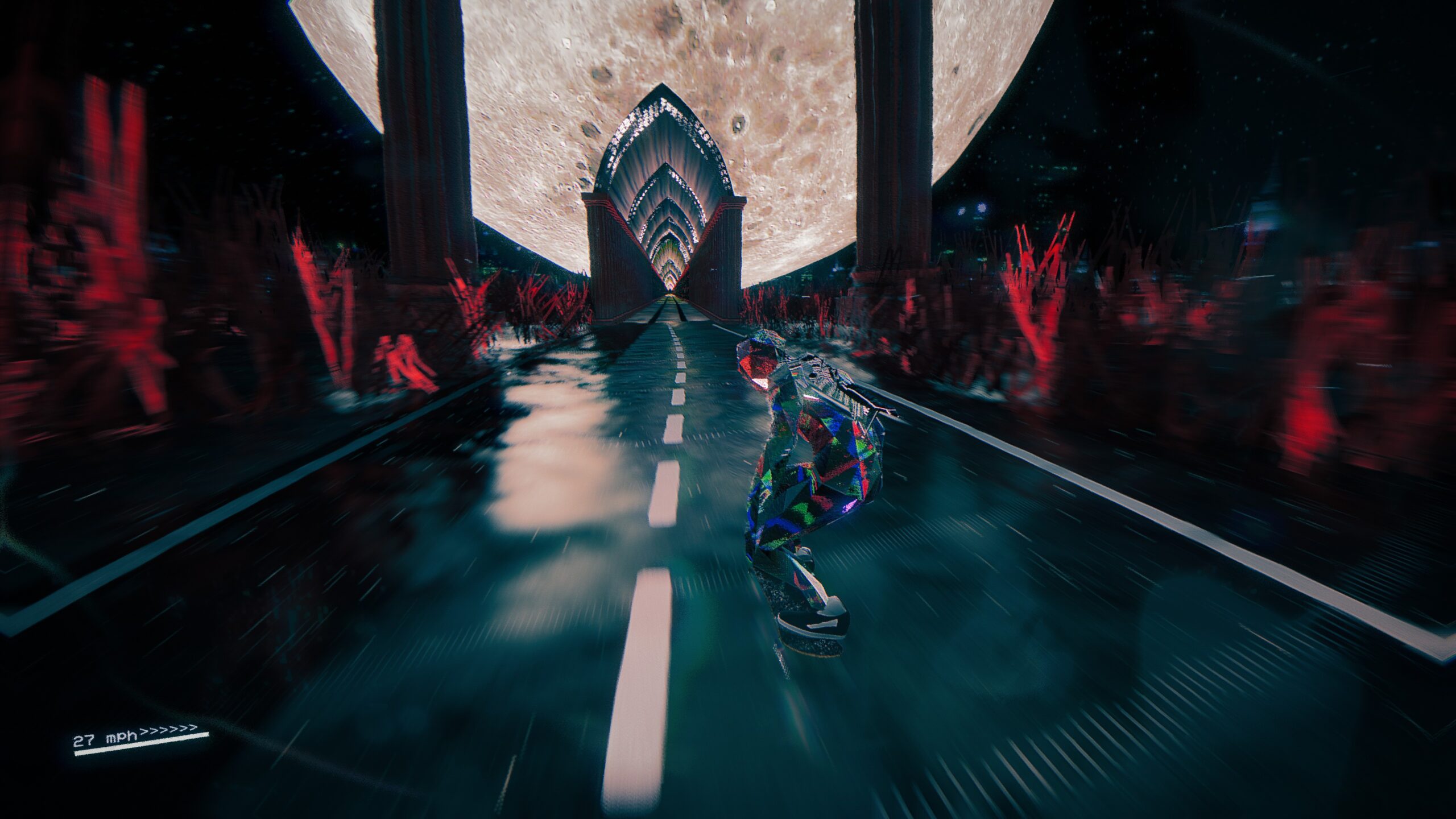 A queste fasi riflessive si contrappongono bruscamente sequenze puramente lineari: corse frenetiche lungo corridoi stretti e distorti che richiedono riflessi pronti per evitare la distruzione immediata. Il culmine è rappresentato dagli scontri con i boss, battaglie spettacolari che non si basano sul combattimento, ma sulla padronanza del movimento: per sconfiggerli bisogna utilizzare l’ambiente, eseguendo trick specifici o attraversando punti critici della loro geometria, trasformando la velocità nell’unica arma efficace contro queste divinità demoniache.