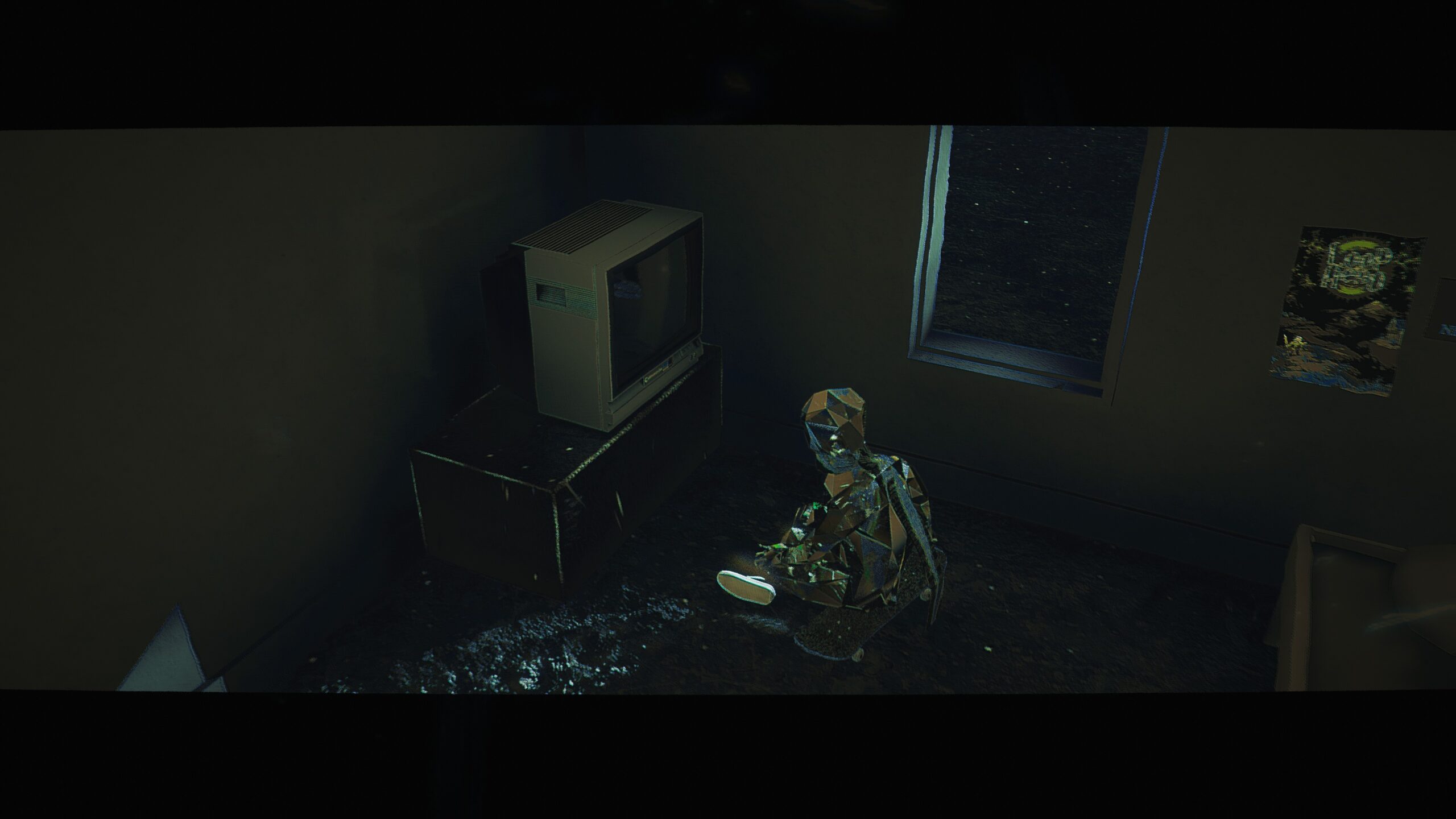 La scrittura di Sam Eng rifugge i canoni tradizionali, procedendo per frammenti poetici e sconnessi, dialoghi surreali che sollevano domande senza dare risposte. Questa scelta di privilegiare le “vibrazionisensoriali rispetto a una storia strutturata dà l’impressione di un’opera che mette lo stile sopra la sostanza, alimentata da dialoghi minimalisti con NPC bizzarri (come rane bariste o figure fatte di sacchi della spazzatura) che allontanano il giocatore dalla gravità della missione.