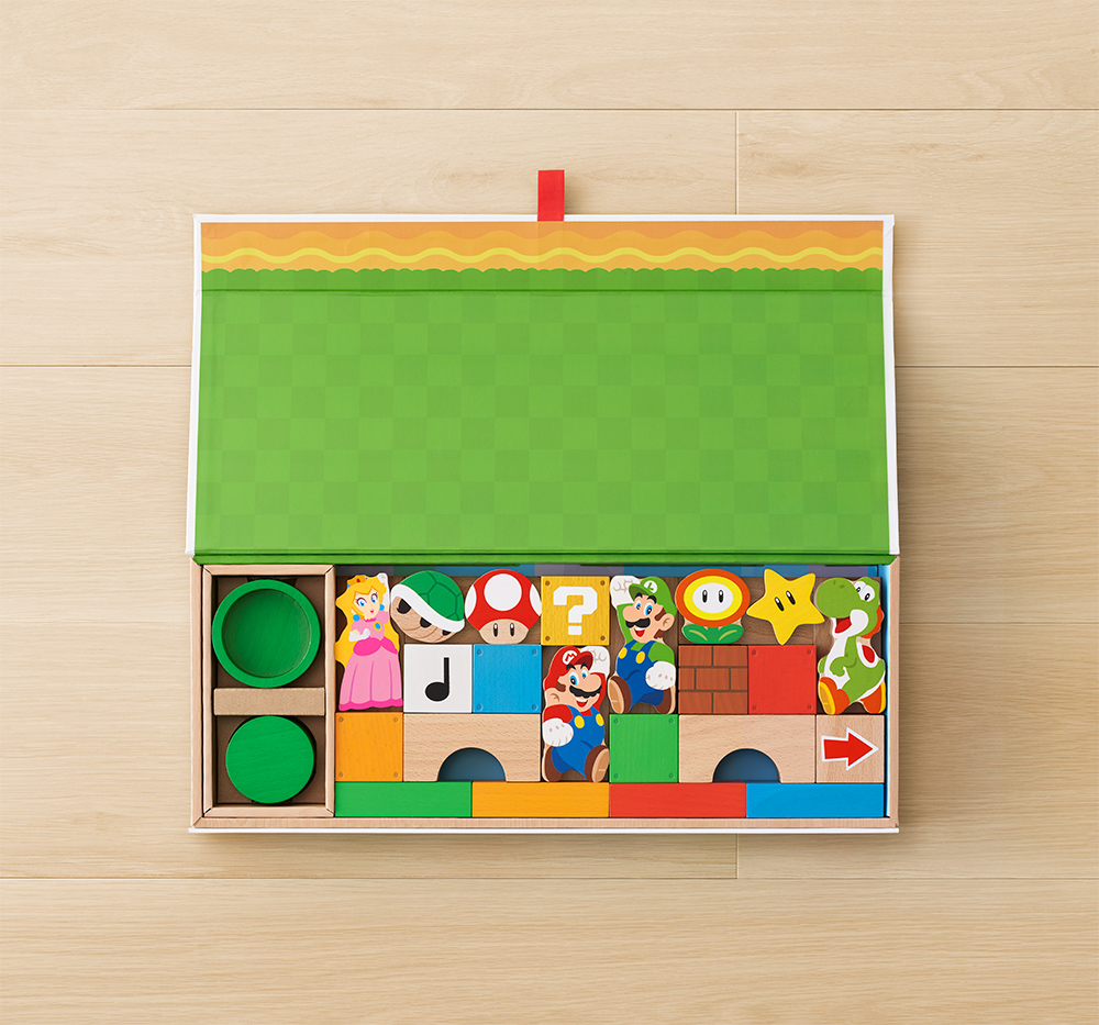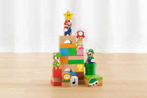 • Due set di blocchi di legno ispirati a Mario e agli oggetti più iconici della serie Super Mario: il set My Mario: Set blocchi di legno – Mario da 3 pezzi e il set My Mario: Set blocchi di legno – Mario e i suoi amici da 30 pezzi.