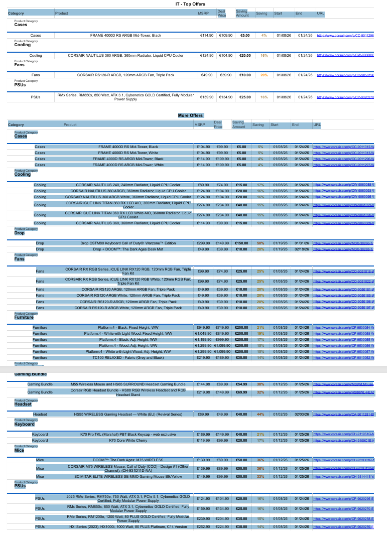 Partono le offerte di Corsair a gennaio nella nuova campagna di gennaio
