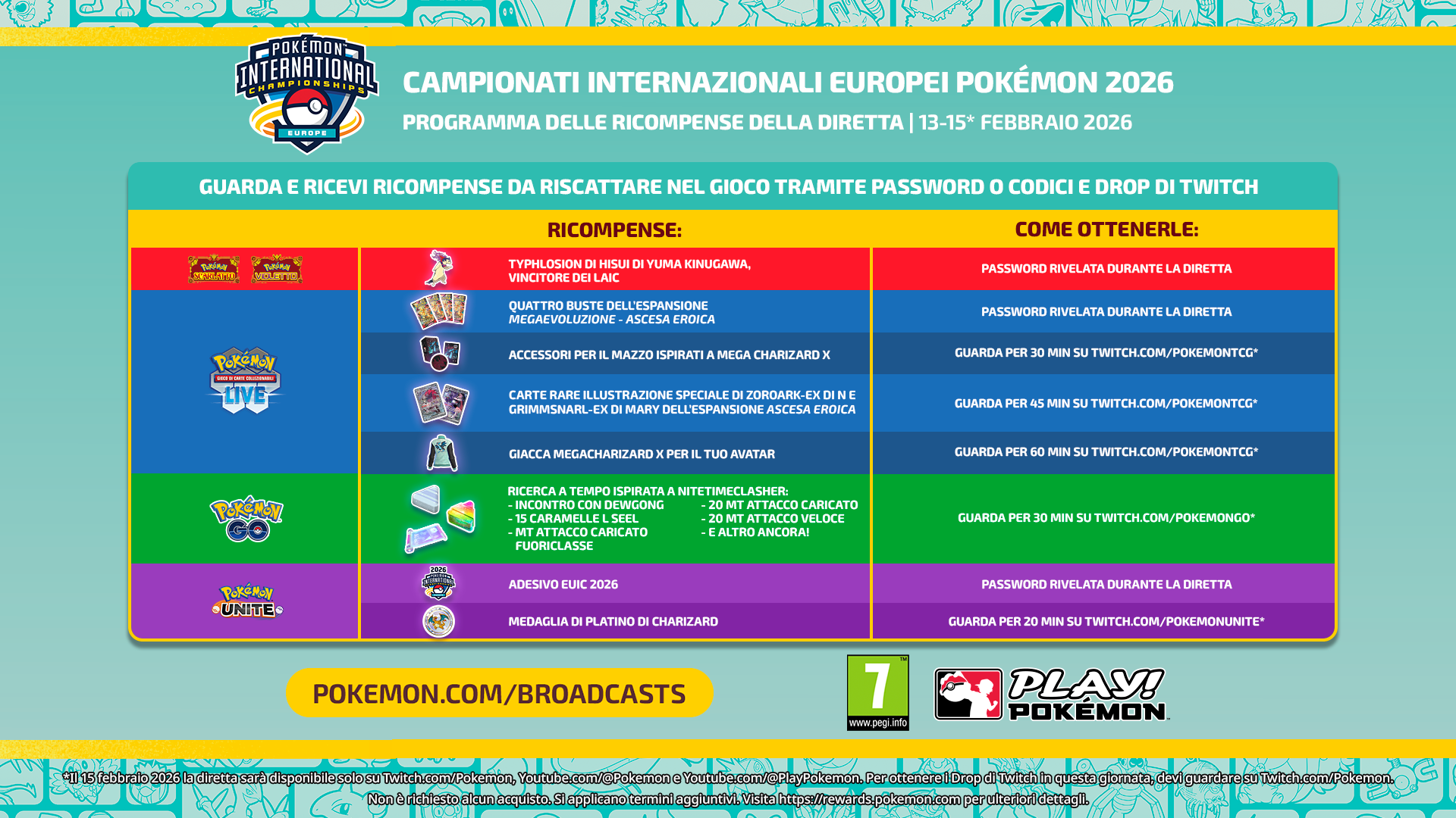 Chi non sarà a Londra potrà comunque vivere ogni momento grazie alle dirette ufficiali in lingua inglese sui canali Pokémon su Twitch, YouTube e TikTok. E non è tutto: seguire le dirette permetterà di ottenere ricompense digitali esclusive nei vari giochi, tra cui: