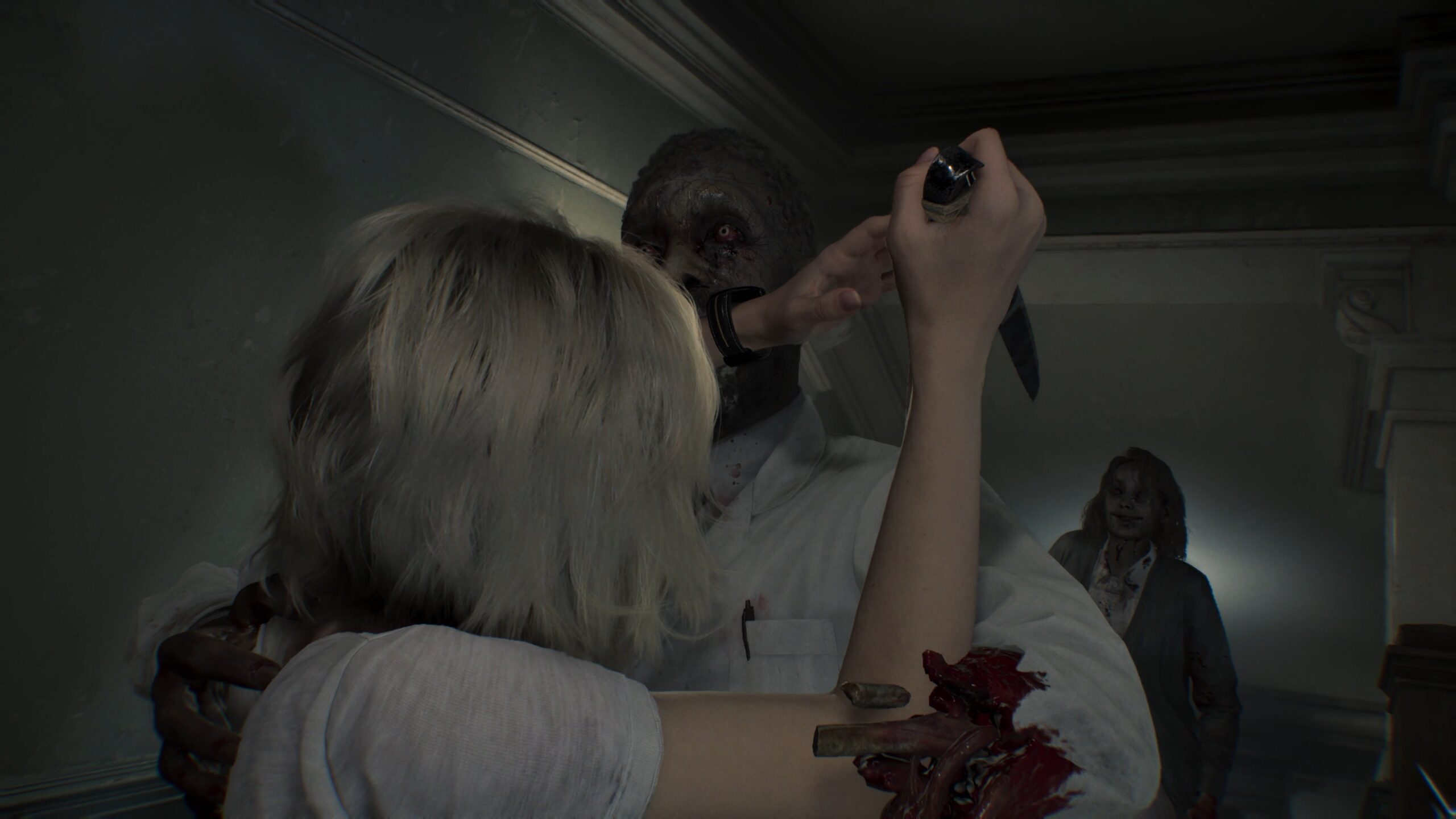 Non potendo affiancare il combattente a causa del consueto escamotage narrativo, Grace รจ costretta ancora una volta ad avanzare da sola. Lโ€™esperienza torna in prima persona, la tensione si addensa, le luci si affievoliscono. Su circa tre ore di provato, una parte consistente del tempo lโ€™abbiamo trascorsa esplorando la clinica nei panni della giovane, una โ€œfortunaโ€ che ci ha permesso di assaporare a lungo lโ€™atmosfera soffocante dei suoi stretti corridoi. Armati e senza un mostro inarrestabile alle calcagna, ci aspettavamo un cambiamento significativo nel gameplay. Cosรฌ non รจ stato: Capcom aveva in serbo lโ€™ennesima finta. Il team creativo ha infatti deciso che il primo nemico incontrato sarebbe stato un massiccio macellaio zombi, la cui presenza impedisce di attraversare le cucine. Boom. Colpo alla testa. La creatura non cade e, sorpresa, la pistola aveva un solo proiettile in canna. Si ritorna immediatamente alla massima espressione di fragilitร  e panico.